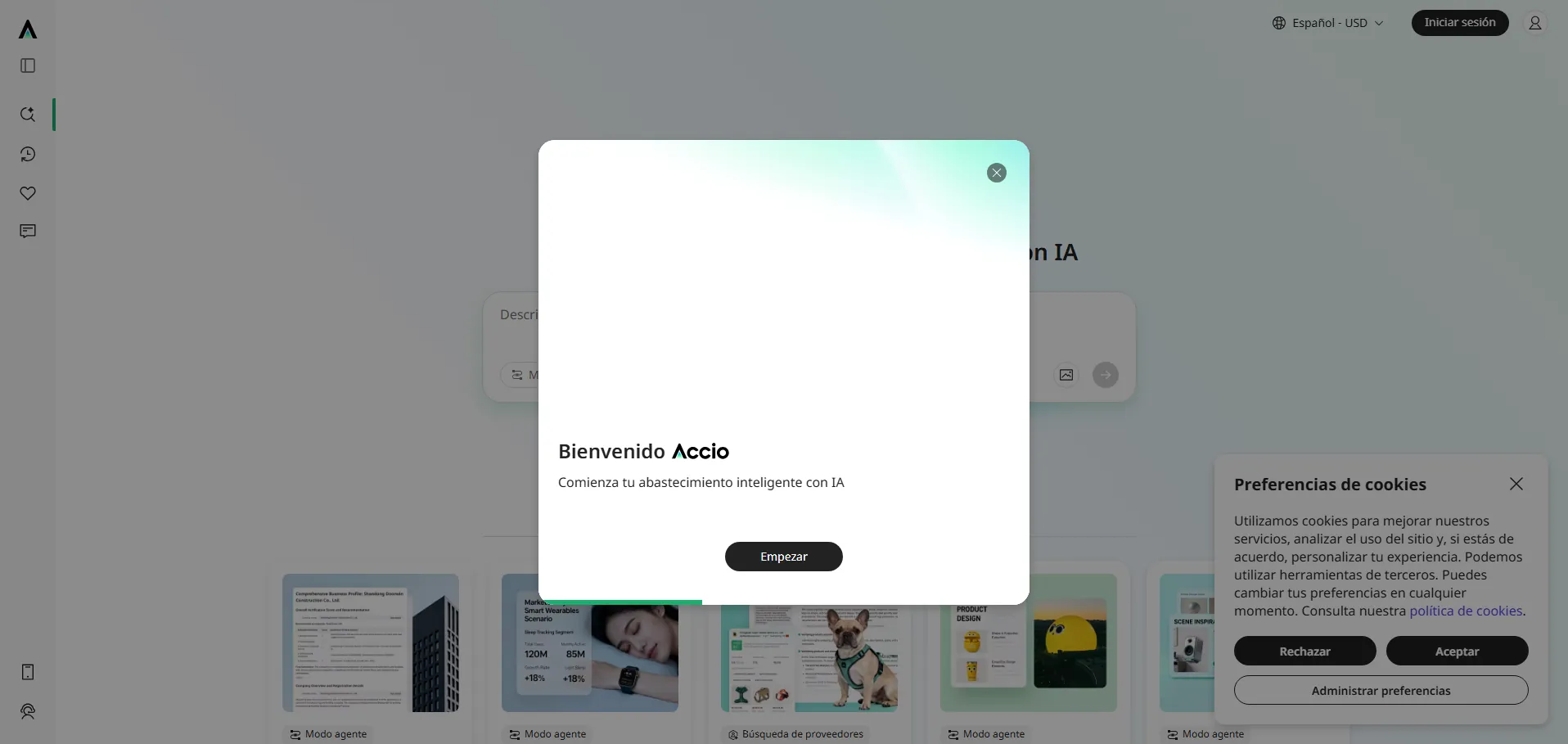 Sitio web de Accio: https://www.accio.com (Iniciar sesión/Registrarse)