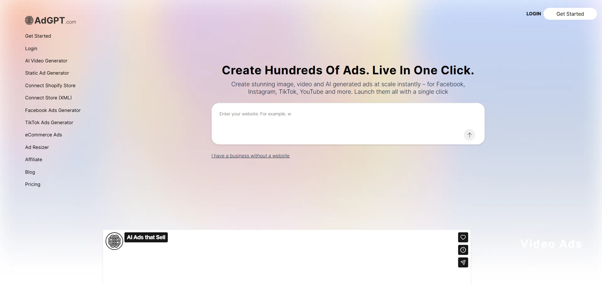 – Sitio web de AdGPT (Iniciar sesión/Registrarse)