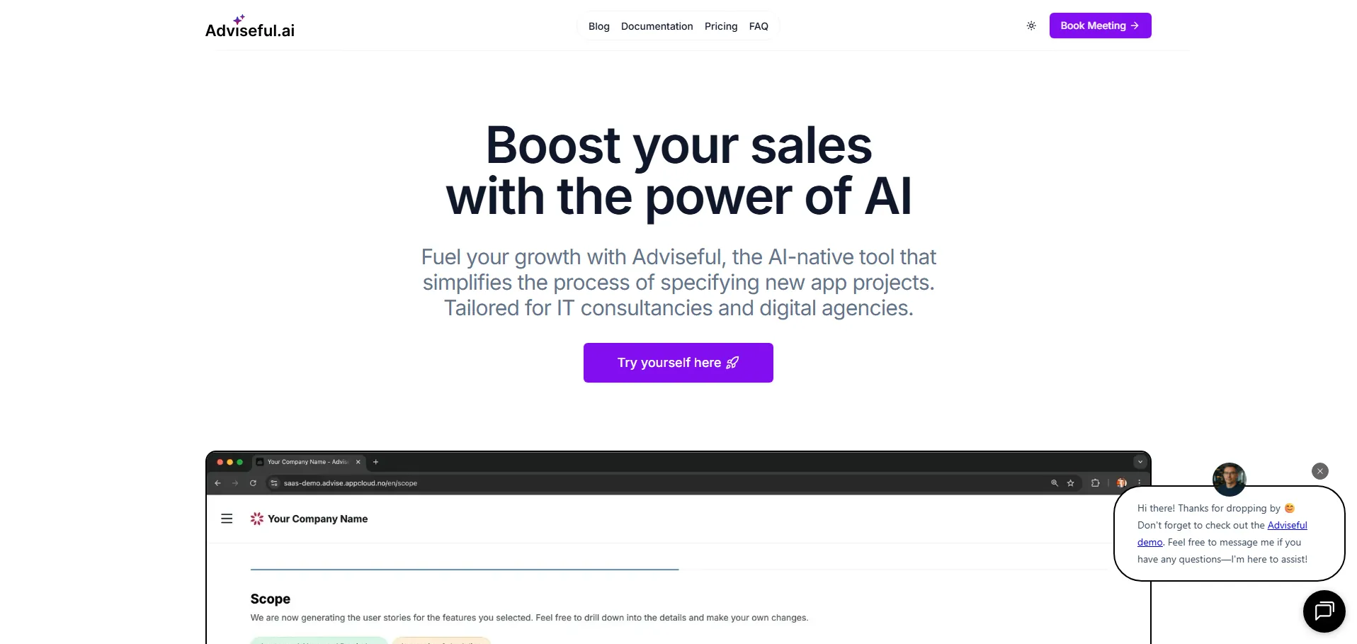 Adviseful es una plataforma nativa de IA que agiliza la planificación y definición de proyectos de aplicaciones. Diseñada especialmente para agencias digitales y consultoras, convierte ideas en conceptos finales en minutos, genera historias de usuario detalladas y elabora resúmenes ejecutivos alineados con los objetivos estratégicos. Además, se integra con sistemas CRM para optimizar la gestión de leads, mejorar el seguimiento de oportunidades y elevar la productividad organizacional.