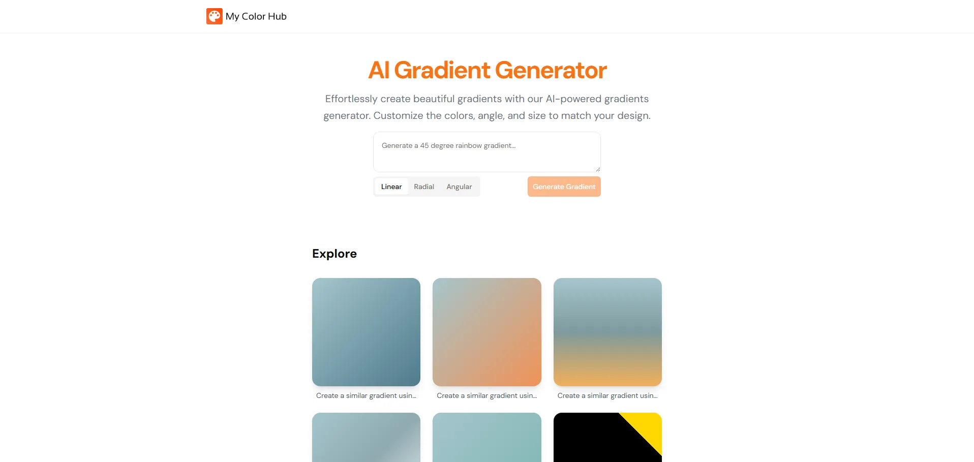 El Generador de Degradados con IA es una herramienta web avanzada que emplea inteligencia artificial para diseñar degradados personalizados de forma rápida y sencilla. Permite ajustar colores, ángulos y tamaños con precisión, ofreciendo opciones de degradado lineal, radial y angular. Gracias a su motor de IA, sugiere combinaciones armónicas y paletas temáticas —desde tonos otoñales hasta esquemas vibrantes tropicales—, facilitando la creación de fondos visualmente impactantes para cualquier proyecto digital.