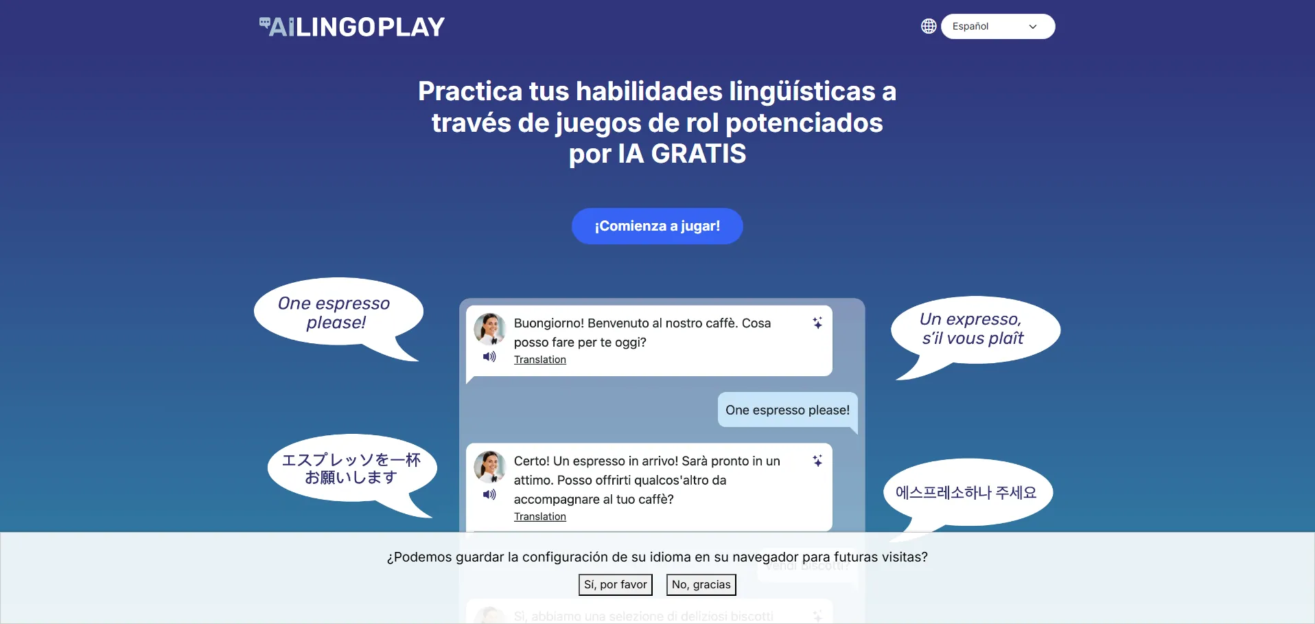 ✅ Escenarios de rol inmersivos que simulan situaciones cotidianas como pedir un café o hacer el check-in en un hotel.