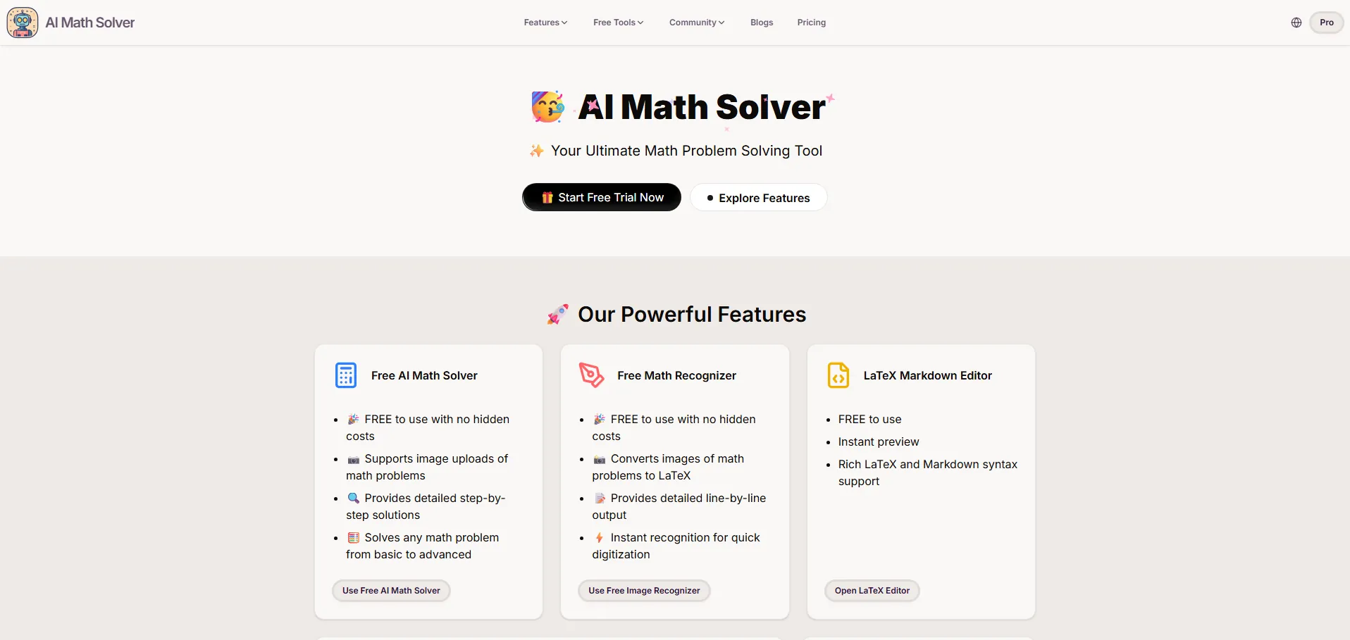 Visita el sitio oficial para acceder a tutoriales, documentación completa y actualizaciones de la herramienta. Encuentra guías de uso, foros de la comunidad y recursos adicionales para sacar el máximo partido a AI Math Solver.