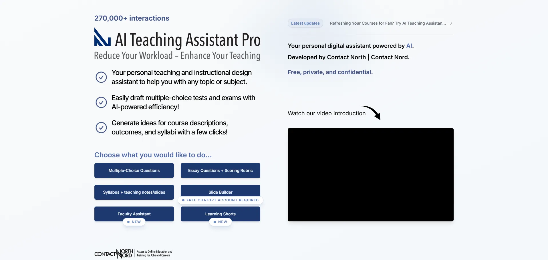 AI Teaching Assistant Pro es una herramienta digital impulsada por inteligencia artificial de Contact North | Contact Nord. Facilita el diseño instruccional y la gestión del aula mediante la generación automática de exámenes de opción múltiple, preguntas de ensayo, rúbricas y programas de estudio. Su IA optimiza la creación de descripciones de cursos, resultados de aprendizaje y materiales educativos, incluyendo presentaciones y videos generados con IA. Priorizando la privacidad y confidencialidad, ofrece un entorno seguro para docentes que buscan innovar y mejorar sus estrategias pedagógicas.