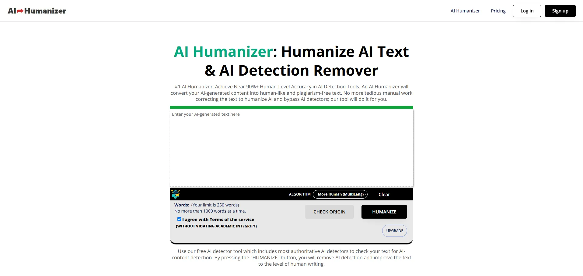 El humanizador de texto con IA es una herramienta avanzada que transforma contenido generado por inteligencia artificial en textos de estilo natural y auténtico. Con un solo clic, convierte párrafos artificiales en redacciones fluidas y legibles, mientras elude detectores de IA fiables como ZeroGPT. Compatible con ChatGPT, Google Bard, Jasper, Claude y otros, elimina rastros automatizados para reforzar la privacidad y ofrece un sistema propio de detección de fragmentos creados por IA.