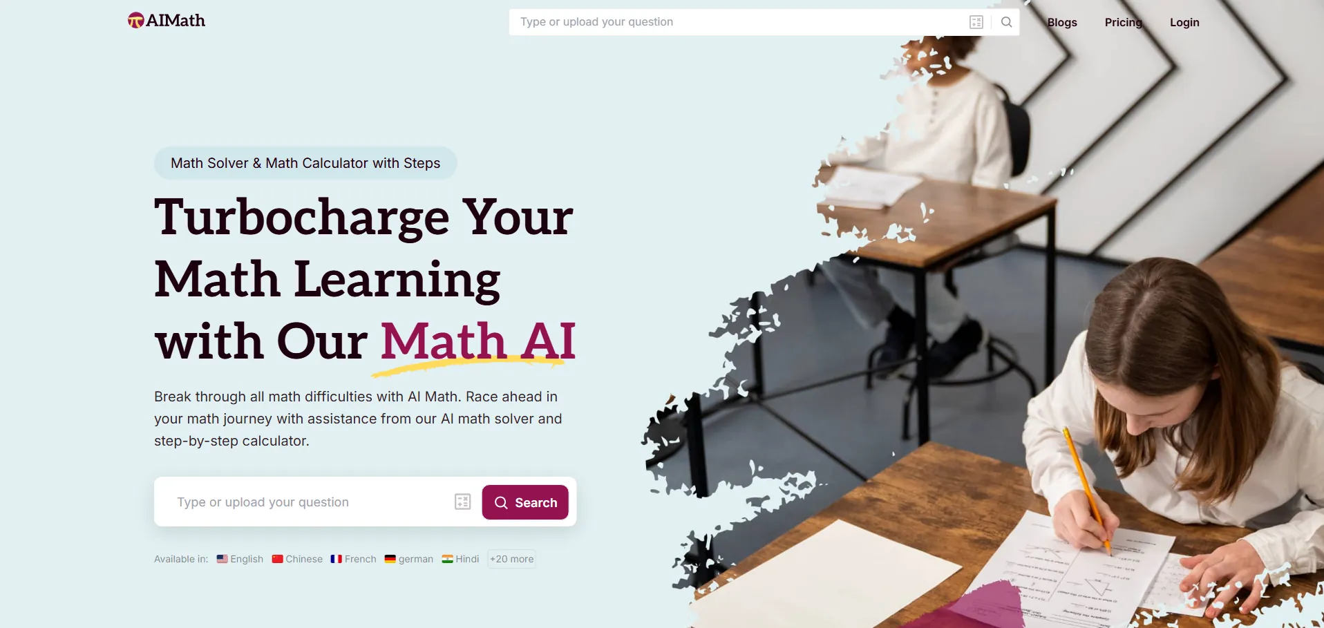AIMath es un solucionador de matemáticas basado en inteligencia artificial que simplifica la resolución de problemas en aritmética, álgebra, geometría, trigonometría, cálculo, estadística y probabilidad. Con un 99 % de precisión y disponibilidad 24/7 en más de 30 idiomas, convierte en solo 10 segundos expresiones de texto en fórmulas y ofrece explicaciones paso a paso adaptadas a cada usuario, mejorando el rendimiento académico hasta en un 35 %.