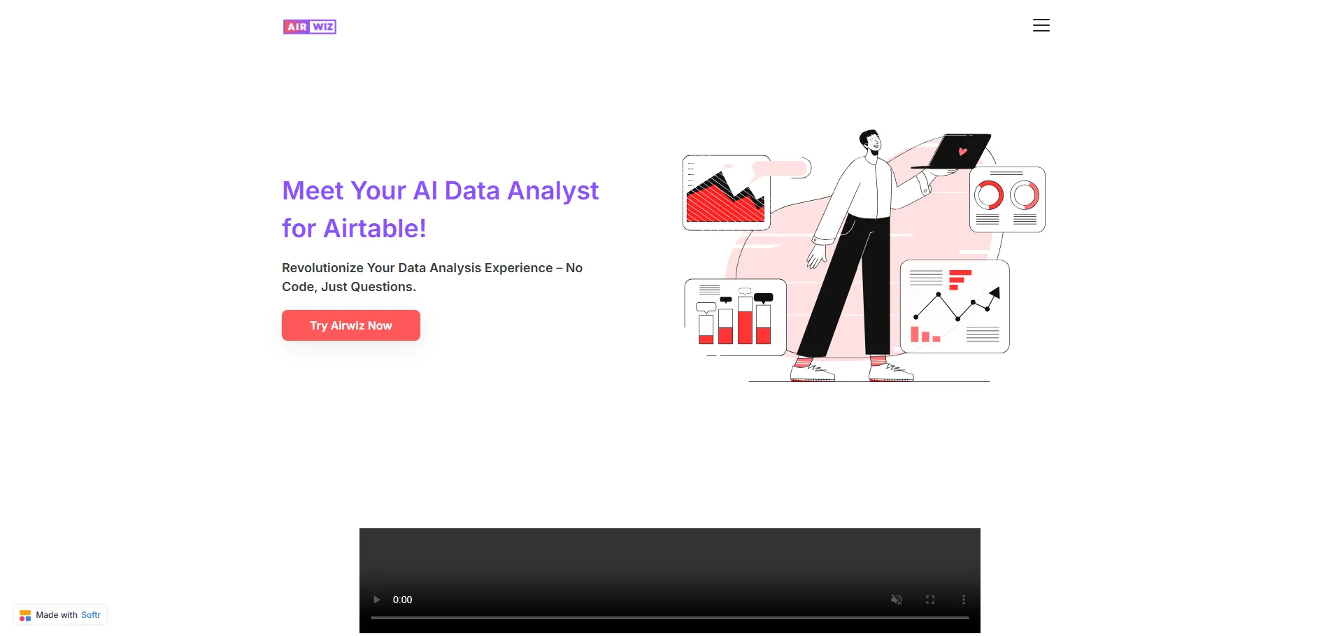 Airwiz es una plataforma de inteligencia artificial diseñada para transformar el análisis de datos en Airtable. Mediante una interfaz conversacional, traduce tus preguntas en consultas a nivel de Python y entrega resultados inmediatos y prácticos, actuando como un analista de datos IA siempre disponible y sin necesidad de programar.