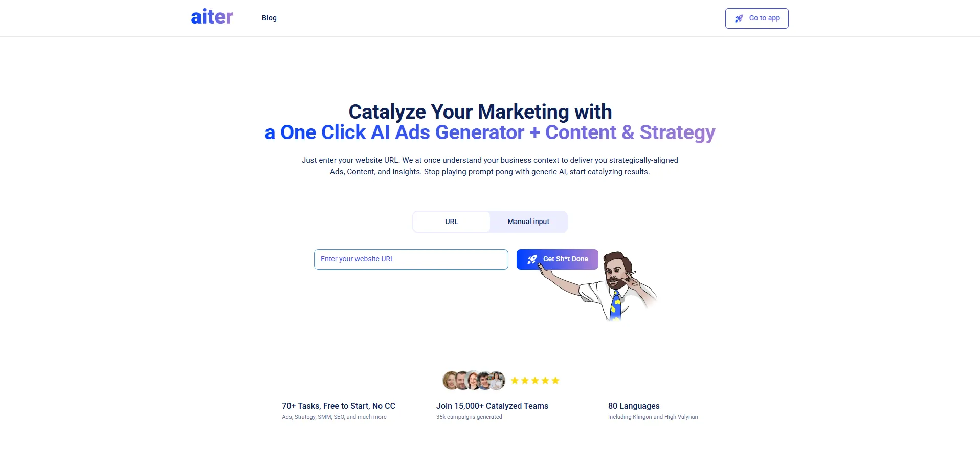 Aiter es un generador de anuncios y estrategias de contenido con inteligencia artificial que, con un solo clic, analiza la URL de tu sitio web y crea anuncios de texto, ideas estratégicas y contenido optimizado con palabras clave SEO/PPC. Ofrece distintos niveles de creatividad para adaptar tono y estilo al de tu marca, permitiéndote lanzar campañas personalizadas de forma rápida y eficiente. Ideal para pequeños empresarios, profesionales del marketing y blogueros que buscan ampliar su alcance sin coste alguno.