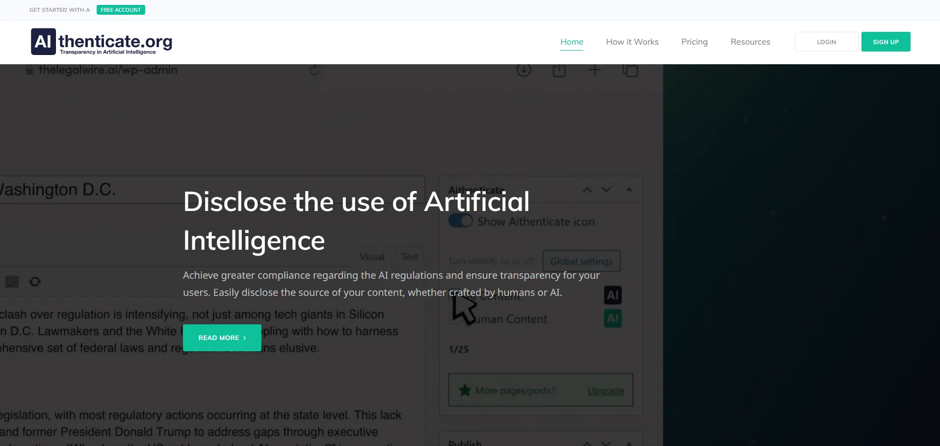 Aithenticate es un plugin de WordPress potenciado por inteligencia artificial, diseñado para garantizar la transparencia y el cumplimiento de las regulaciones en contenidos generados por IA. Añade indicadores visuales —un icono azul para contenido de IA y verde para contenido humano— y permite crear perfiles de empresa personalizables que detallan las tecnologías de IA empleadas en la elaboración de cada publicación.