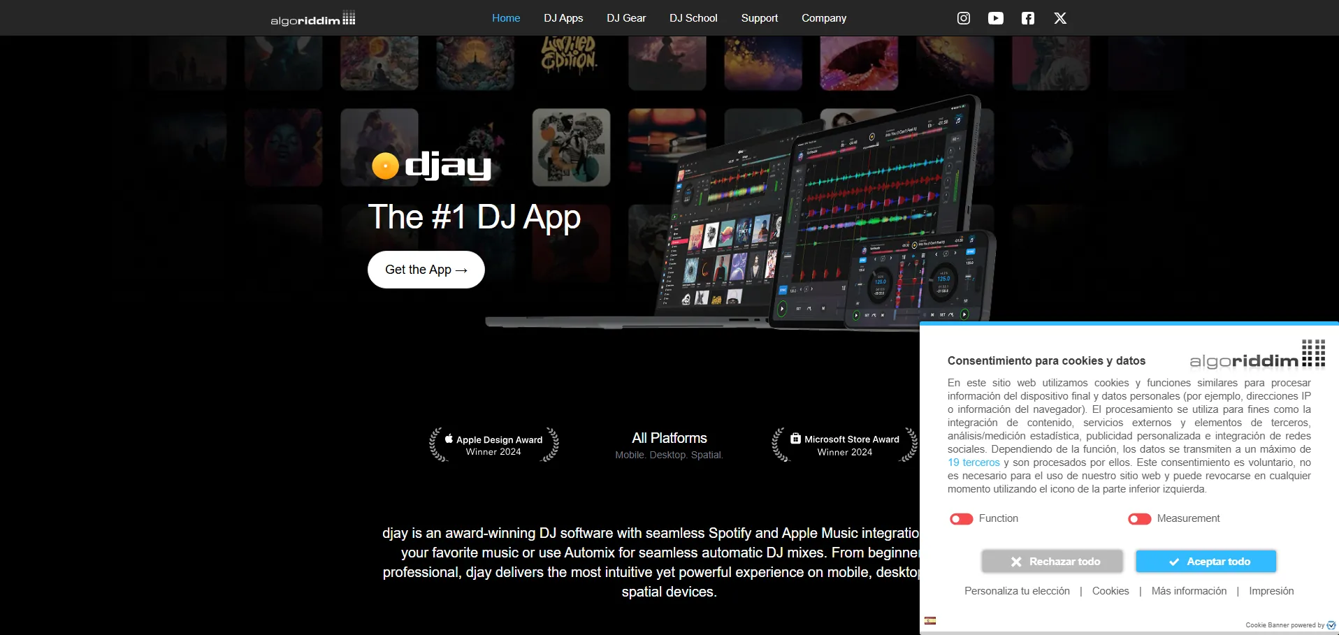 Algoriddim DJ (djay) es un software de mezcla musical diseñado para DJs de todos los niveles. Integra Apple Music, tecnología Neural Mix™ y separación de fuentes con IA para ofrecer mezclas profesionales en dispositivos móviles, de escritorio y hardware espacial. Permite acceder a un catálogo de más de 100 millones de canciones, grabar sesiones en vivo y aplicar automezclas gracias a su potente motor de inteligencia artificial.