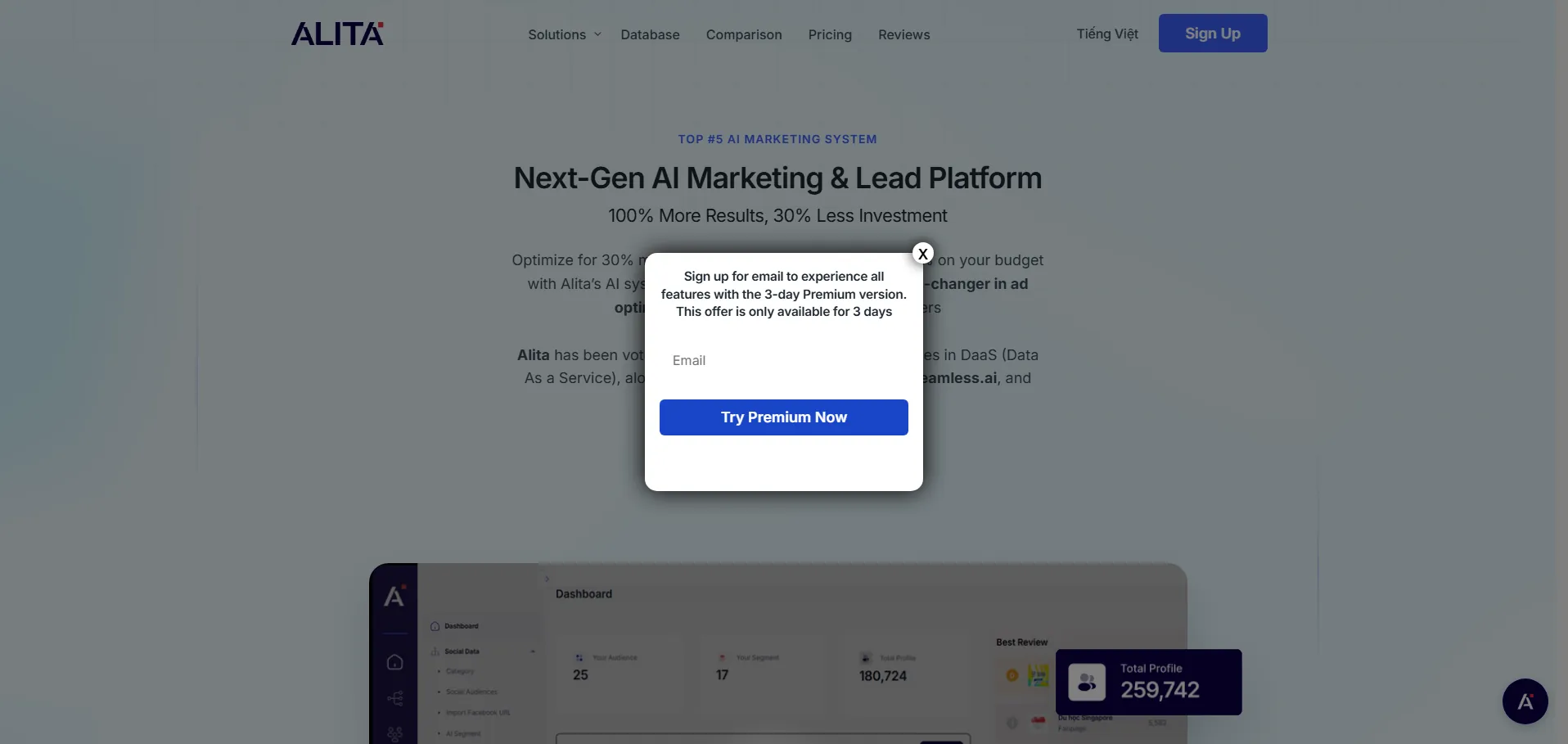 Alita es una plataforma de segmentación social en la nube que potencia el marketing B2B mediante enriquecimiento de datos y análisis con inteligencia artificial. Combina información propia y de redes sociales para generar millones de perfiles de clientes potenciales y optimizar la precisión de las campañas multicanal hasta en un 40 %. Sus algoritmos de big data y IA detectan patrones de comportamiento en redes sociales y actualizan los datos en tiempo real, facilitando estrategias digitales más efectivas.