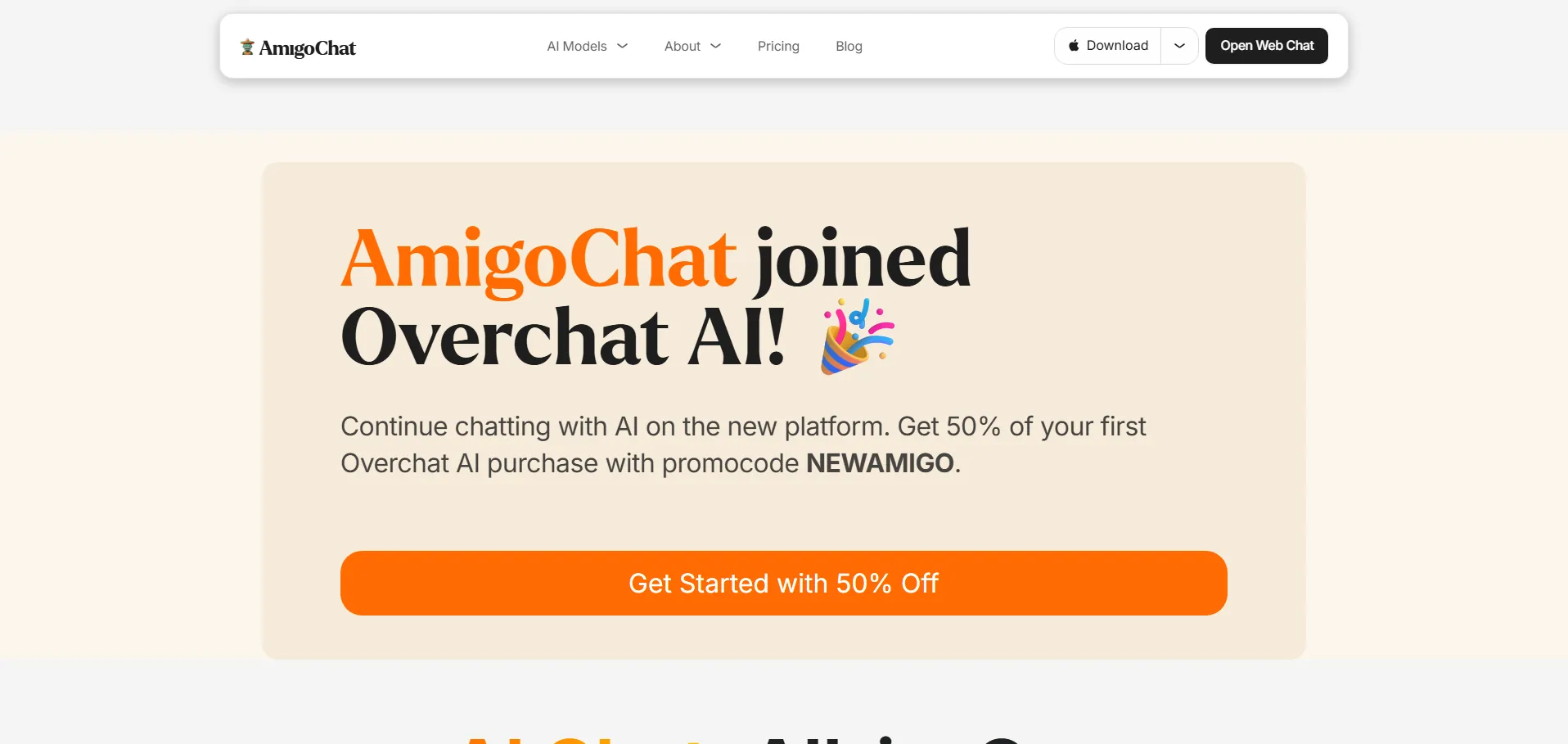AmigoChat es un chat y asistente con inteligencia artificial que ofrece acceso a los últimos modelos de IA, mensajes predefinidos y herramientas de productividad. Disponible en web, iOS, Android y Telegram, permite interacciones conversacionales y asistencias personalizadas con ChatGPT 4.5, Claude 3.7 Sonnet, Deepseek R1 y más.