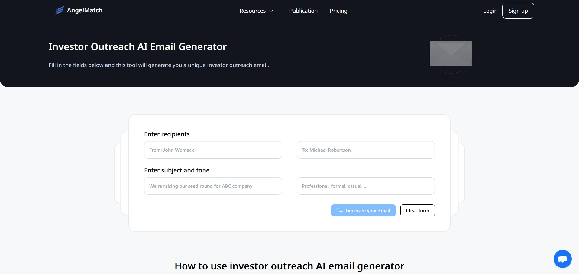 Angel Match es un generador de correos electrónicos con IA diseñado para facilitar la conexión entre emprendedores y posibles inversores. Con solo indicar los destinatarios y el tono deseado, la plataforma crea mensajes personalizados y únicos que mejoran la tasa de respuesta. Su base de datos segmentada de más de 100 000 inversores agiliza el proceso de recaudación de fondos, ahorrando tiempo y esfuerzo a startups y equipos de fundraising.