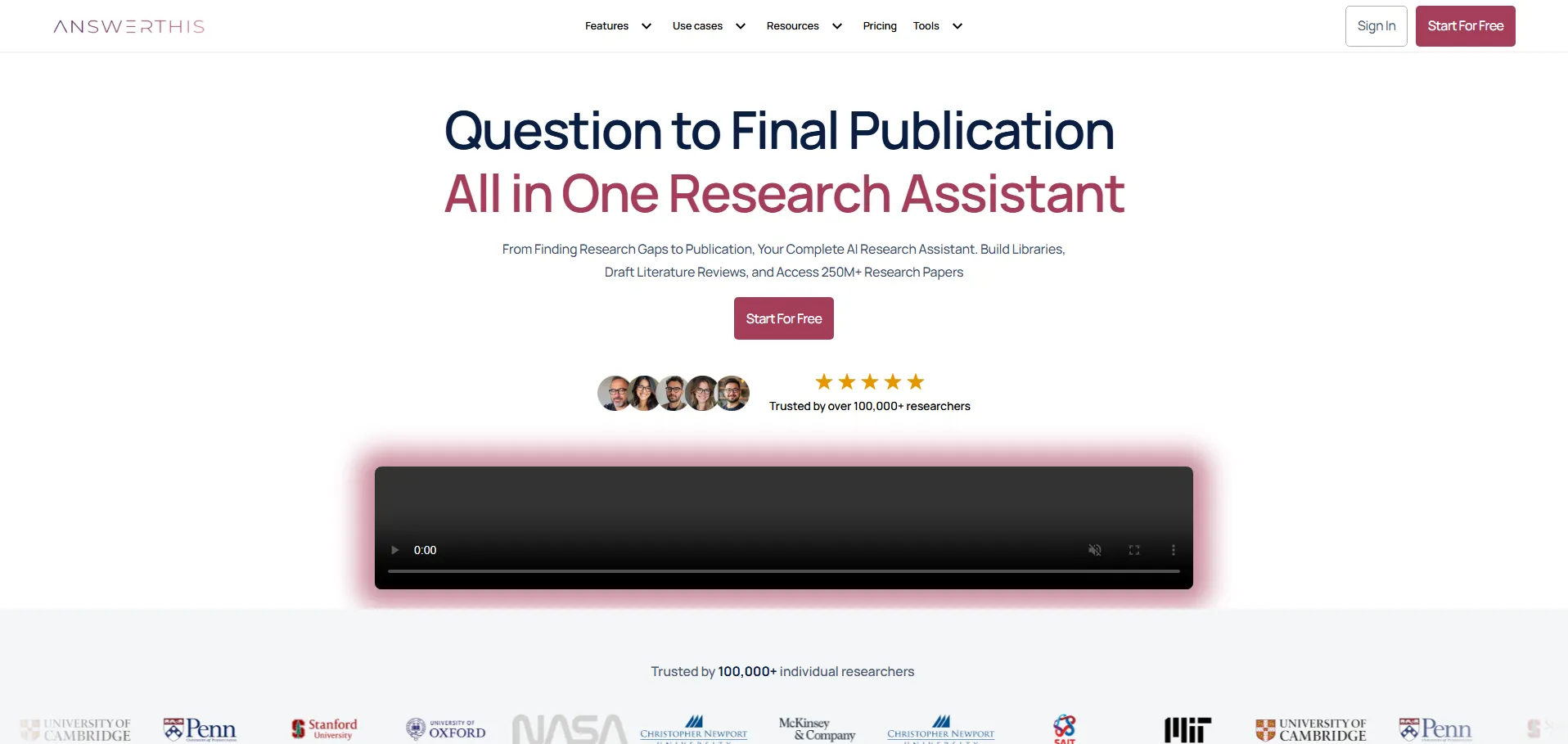 AnswerThis es una plataforma de investigación impulsada por IA que agiliza la obtención de resúmenes académicos y datos de calidad. Los usuarios cargan sus consultas y reciben análisis estructurados respaldados por fuentes verificadas, eliminando la necesidad de revisar manualmente múltiples documentos. Gracias a su motor cognitivo, AnswerThis extrae información relevante, ofrece explicaciones concisas con citas directas y organiza el contenido en un formato claro y accesible, ideal para académicos, estudiantes y profesionales.