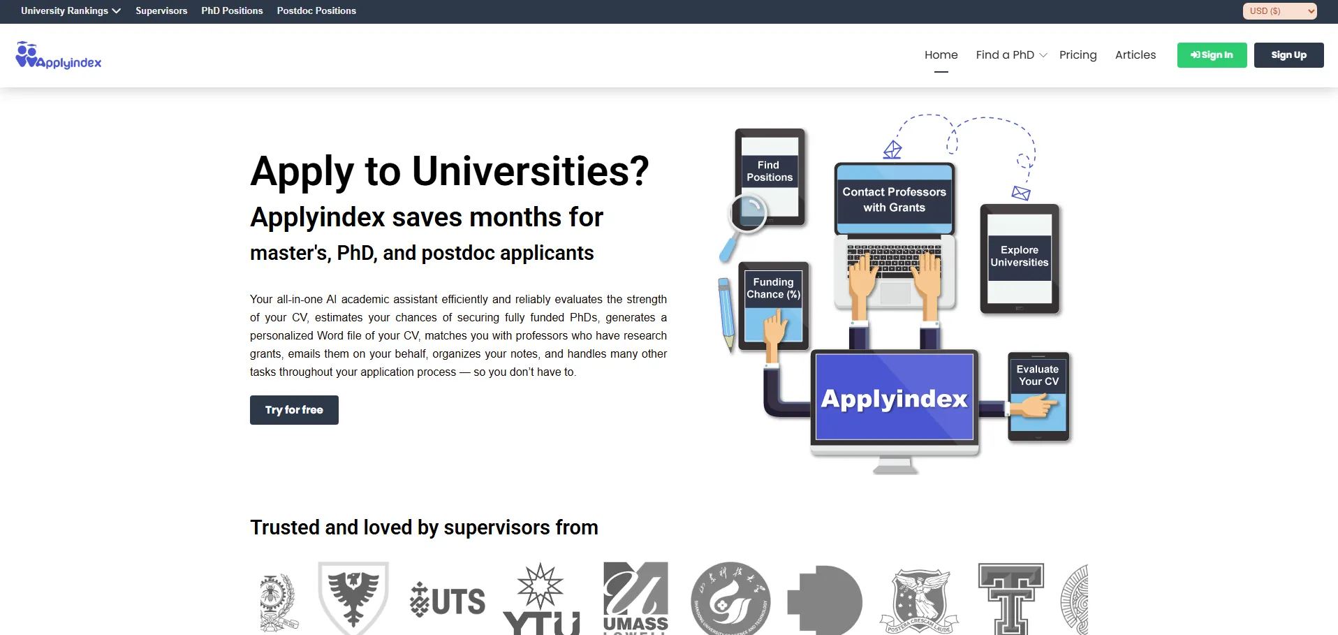 {{ApplyIndex}} es una plataforma de emparejamiento académico impulsada por inteligencia artificial que conecta a solicitantes de maestría, doctorado y posdoctorado con supervisores de investigación en todo el mundo. Su avanzado motor de búsqueda y bases de datos automatizadas filtran perfiles según áreas como bioquímica, química, informática y más, reduciendo hasta en un 90 % el tiempo dedicado a identificar al mentor ideal y optimizando el proceso de solicitud académica.
