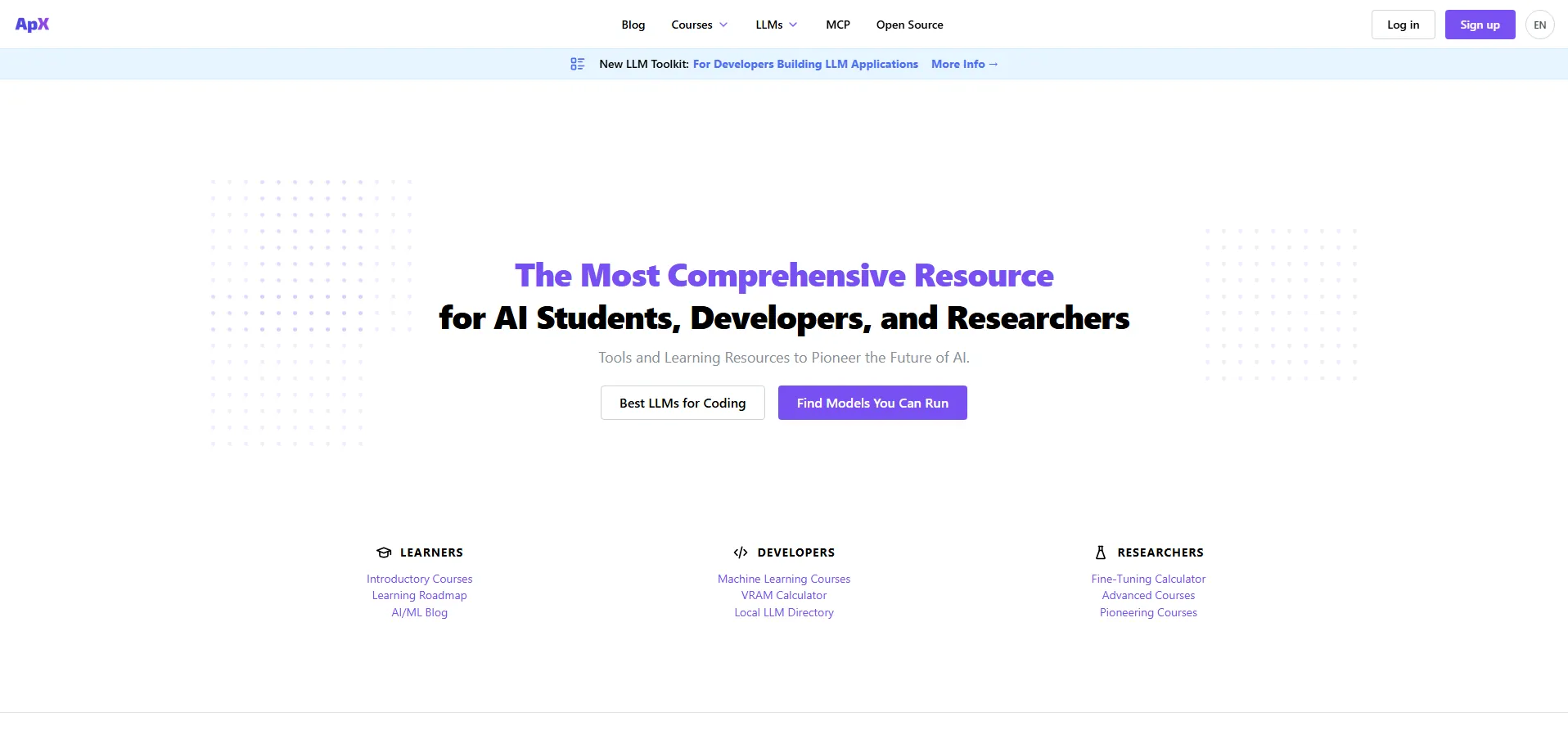 {{ApX Machine Learning}} es una plataforma todo en uno para crear, entrenar y desplegar modelos de aprendizaje automático, incluidos modelos de lenguaje personalizados. Ofrece herramientas de AutoML para automatizar flujos de trabajo con datos tabulares, así como cursos gratuitos y programas formativos en ciencia de datos, SQL y fundamentos de IA, accesibles tanto para principiantes como para expertos.