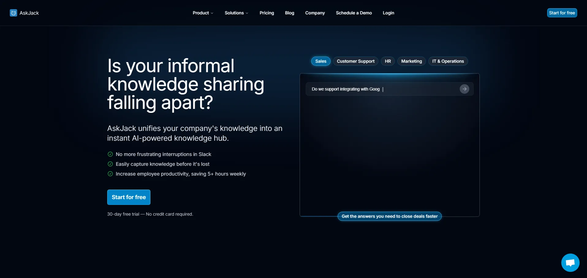 AskJack es una plataforma de inteligencia artificial diseñada para facilitar el acceso rápido a la información interna de las empresas. Con su motor de IA generativa, AskJack conecta fuentes de datos corporativos como Google Drive, Jira y Notion, ofreciendo respuestas instantáneas a consultas operativas, procedimientos de RR. HH. y restablecimiento de contraseñas. Al centralizar el conocimiento y eliminar silos informativos, AskJack aumenta la productividad y mejora la colaboración entre equipos.
