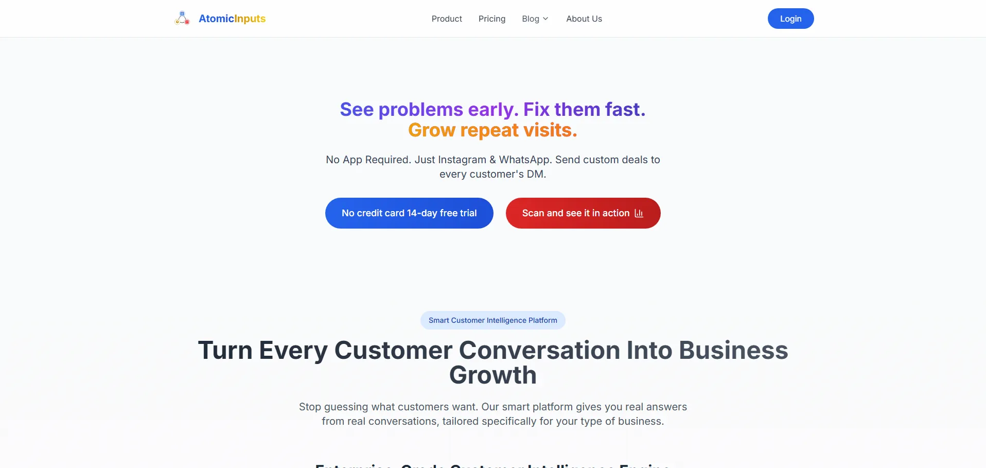Atomic Inputs es una solución avanzada de interacción con el cliente que emplea inteligencia artificial para crear encuestas personalizadas y recopilar opiniones a través de redes sociales. Su plataforma ofrece plantillas configurables, análisis visuales y paneles de control en tiempo real, facilitando la monitorización de métricas de satisfacción y ofreciéndote recomendaciones prácticas para mejorar la experiencia de usuario. Con integración directa en canales como Instagram y WhatsApp, Atomic Inputs optimiza la eficiencia en la comunicación y permite a las empresas responder con rapidez a las necesidades de sus clientes.