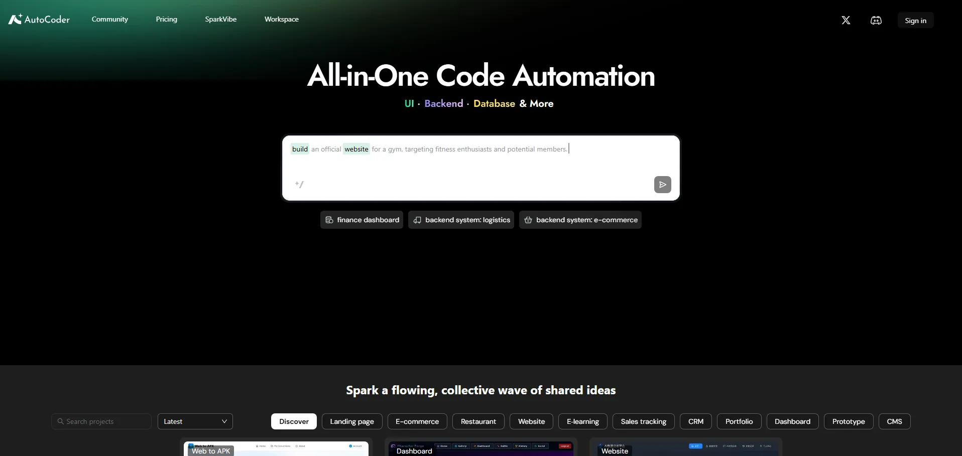AutoCoder es una plataforma integral de programación impulsada por IA que agiliza todo el ciclo de desarrollo de software. Mediante una interfaz conversacional, permite generar automáticamente componentes de front-end, back-end y esquemas de base de datos a partir de la descripción de tu flujo de usuario. Su sistema interactivo valida requisitos antes de producir cada módulo, mientras que la edición manual garantiza un control preciso. Con un solo clic, tu aplicación se despliega en entornos de producción, reduciendo tiempos y minimizando errores.