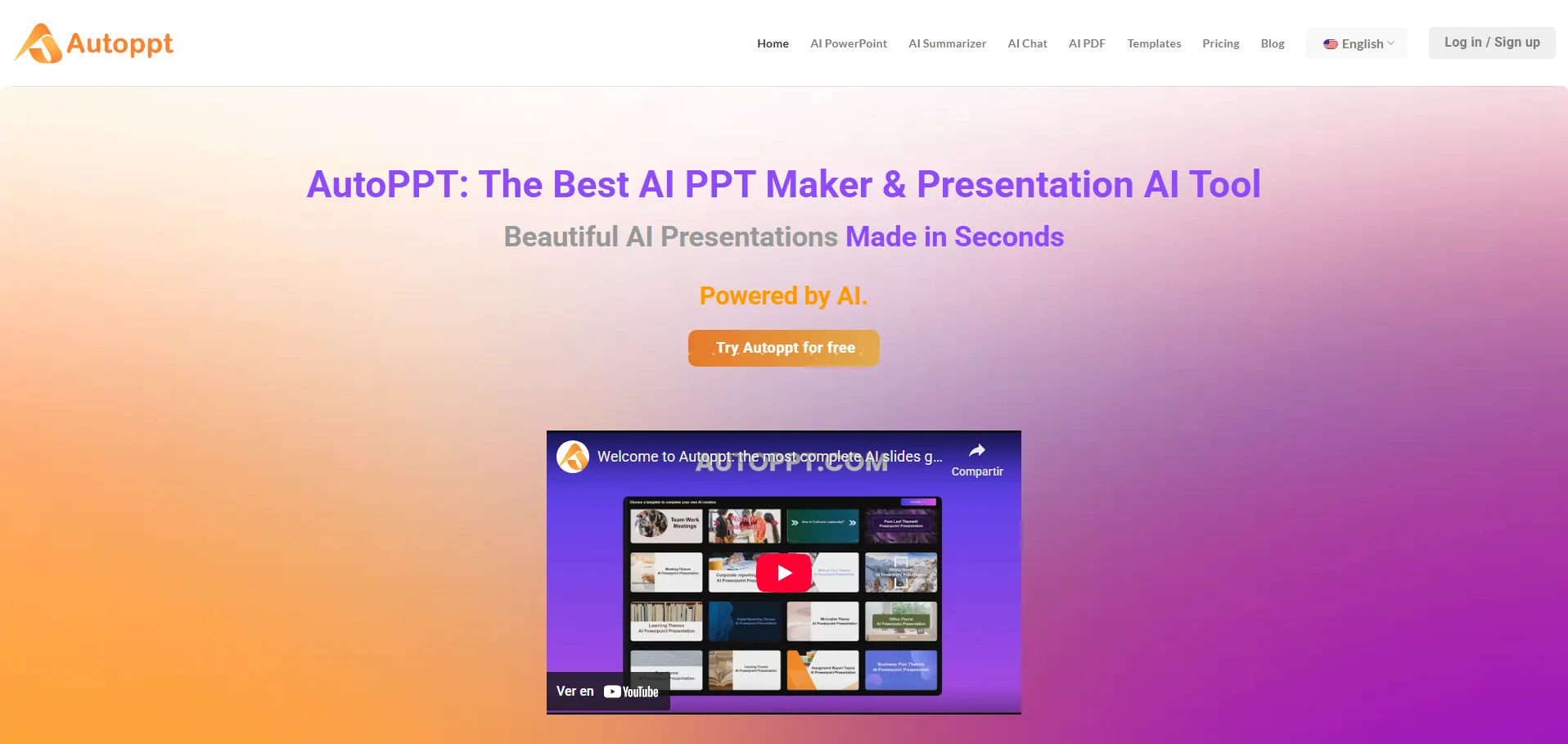 Autoppt es un Creador de PowerPoint impulsado por IA que permite generar presentaciones profesionales en segundos a partir de un simple tema o documento. Gracias a la tecnología de inteligencia artificial, convierte archivos Word, PDF o conceptos básicos en diapositivas con diseños modernos y adaptados a tu contenido. Sin necesidad de experiencia en diseño, Autoppt ajusta estilos, organiza el flujo de información y admite más de 100 idiomas para llegar a audiencias globales con un solo clic.