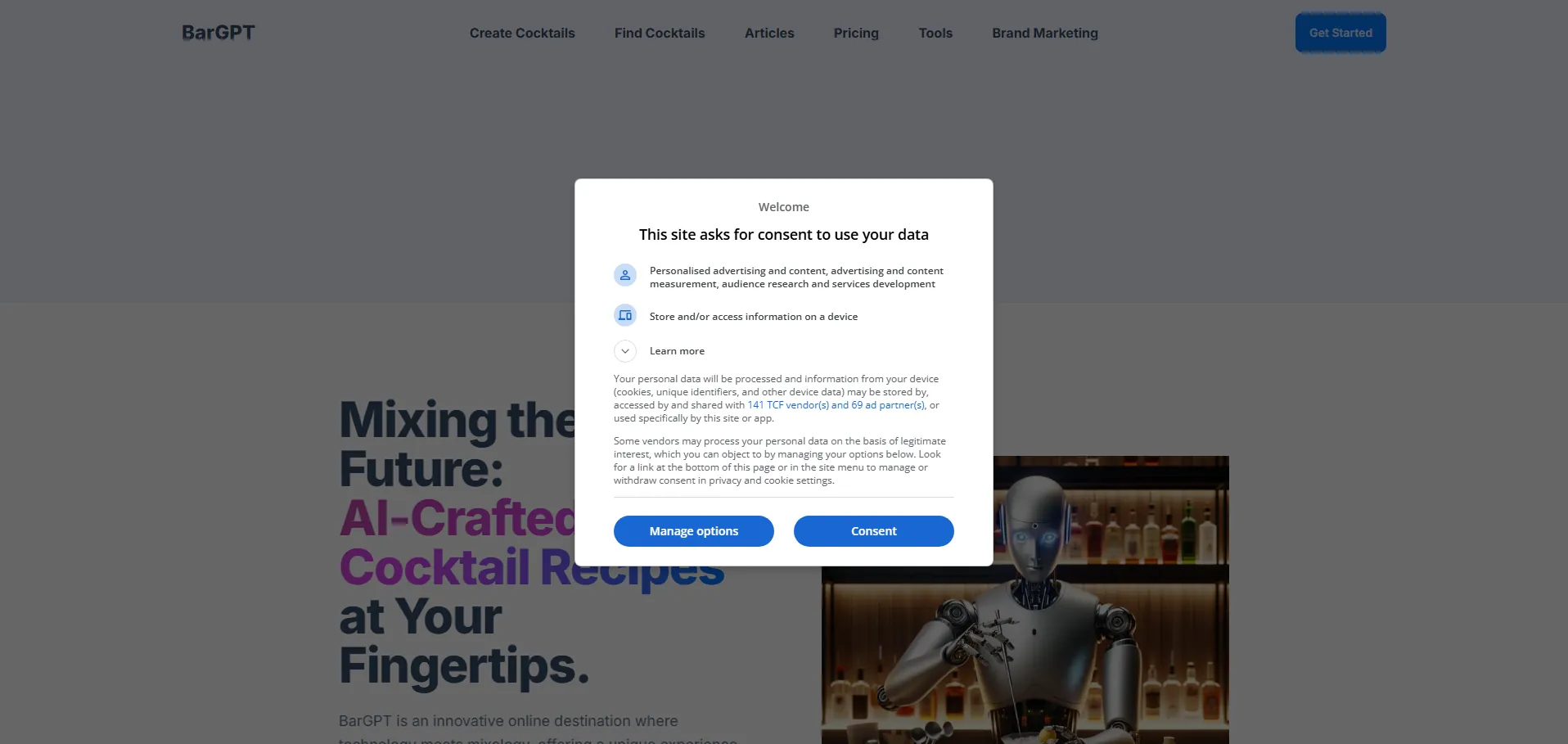BarGPT es un generador de cócteles con IA que permite crear, explorar y compartir recetas de bebidas de forma sencilla. Equipado con un barman virtual que ha ideado más de 10.000 cócteles, BarGPT ofrece descripciones detalladas, imágenes personalizables y maridajes culinarios generados por inteligencia artificial. Los usuarios pueden buscar mezclas según los ingredientes disponibles, guardar sus recetas favoritas y descubrir las creaciones mejor valoradas por una comunidad global, todo desde una interfaz intuitiva.