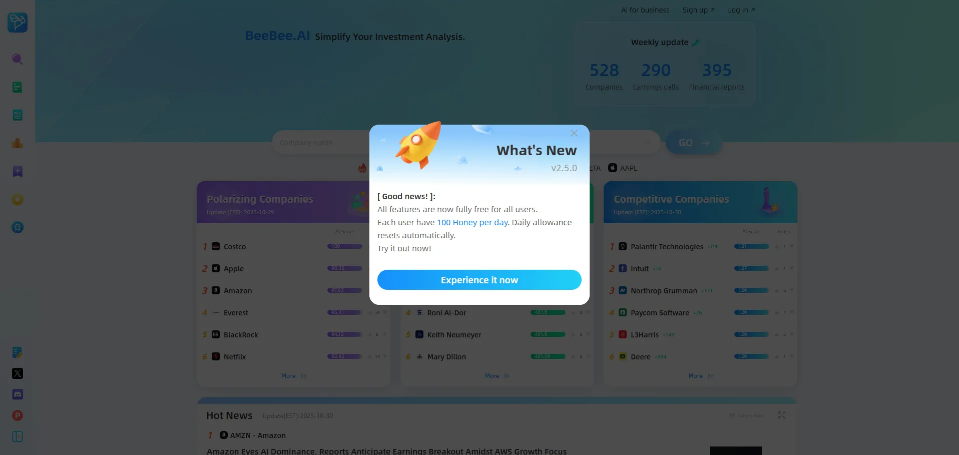 BeeBee Ai es una plataforma de análisis de inversiones impulsada por inteligencia artificial. Diseñada para centrarse en tendencias a largo plazo, ofrece resúmenes semanales de resultados financieros, informes de empresas, perfiles de CEOs influyentes y comparativas competitivas. Con puntuaciones diarias de IA, votaciones y clasificaciones trimestrales, BeeBee Ai brinda una visión integral del mercado, permitiendo a los inversores tomar decisiones estratégicas basadas en datos precisos.