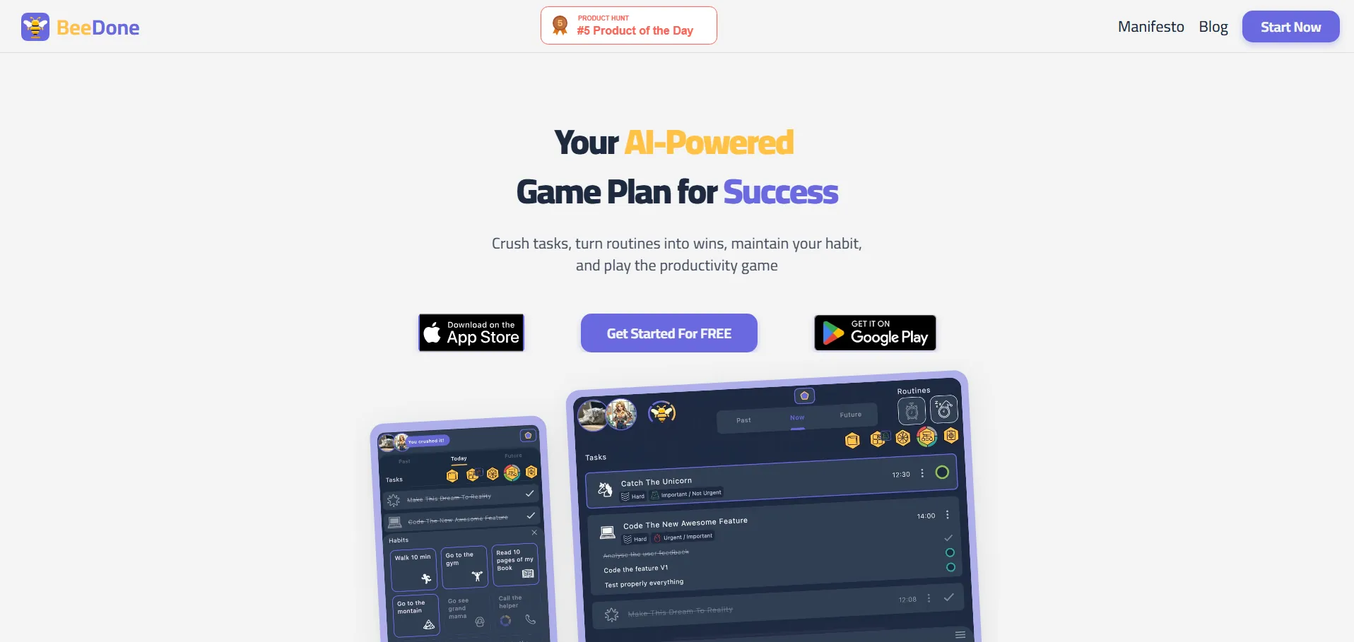 Beedone es una aplicación de productividad gamificada potenciada por IA, diseñada para transformar la gestión de tareas y rutinas diarias en una experiencia divertida y eficiente. Gracias a su motor de inteligencia artificial, Beedone organiza automáticamente tus actividades, establece prioridades según tus hábitos y ofrece recomendaciones personalizadas. Su sistema de gamificación incluye recompensas, niveles y estadísticas de progreso, motivando al usuario a completar objetivos y mantener hábitos saludables. Compatible con uso individual y colaborativo, Beedone simplifica la planificación, el seguimiento y la optimización de tareas para maximizar productividad y cumplir metas.