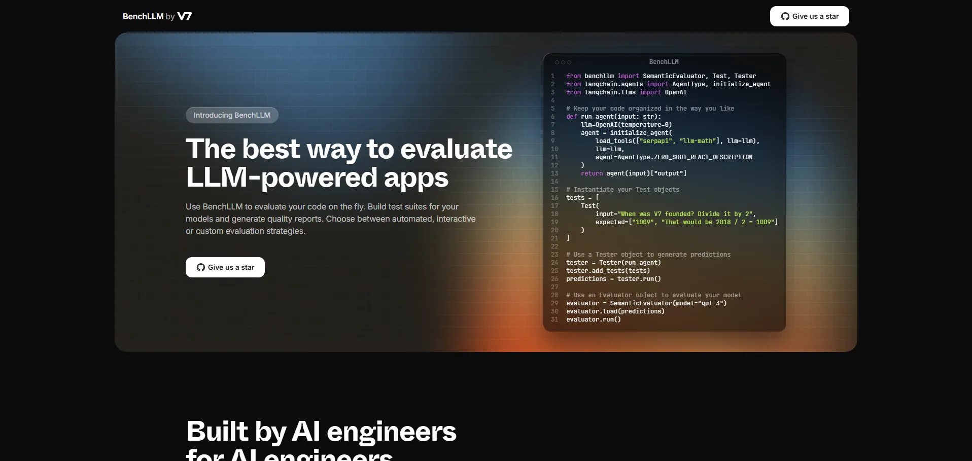 BenchLLM es una herramienta de evaluación de inteligencia artificial especializada en aplicaciones basadas en LLM (Large Language Models). Permite implementar estrategias de evaluación automatizadas, interactivas o totalmente personalizadas, importando objetos semánticos para pruebas y testers. Gracias a su integración con OpenAI, Langchain.agents, Langchain.llms y API Box, ofrece una ejecución de pruebas ágil mediante comandos CLI y genera informes de calidad detallados. Además, facilita la monitorización del rendimiento de los modelos en producción y la detección rápida de regresiones, ayudando a equipos de IA a garantizar la fiabilidad y precisión de sus aplicaciones.