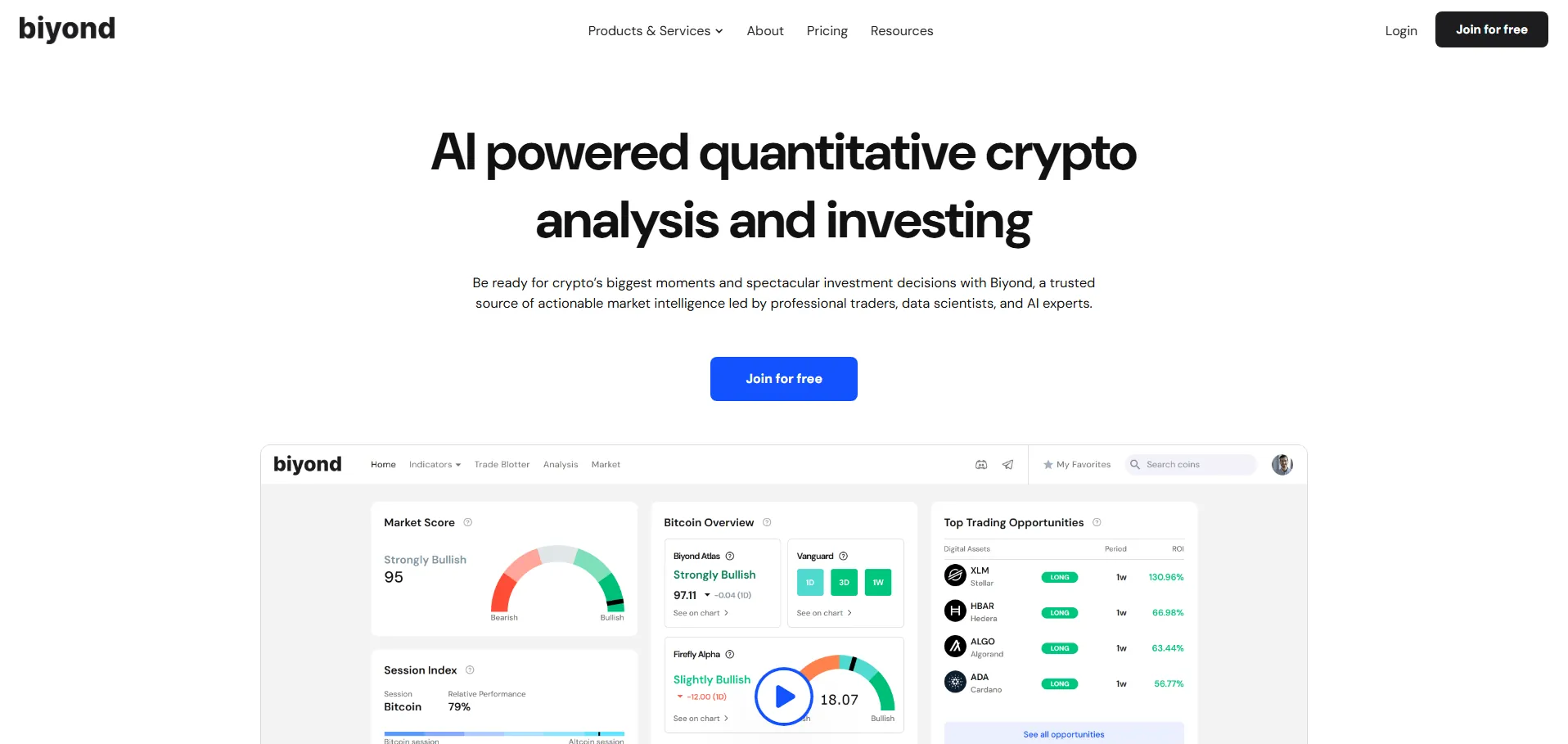 Biyond es una plataforma de inversión en criptomonedas potenciada por inteligencia artificial. Desarrollada por traders profesionales, científicos de datos y expertos en IA, ofrece análisis diarios de mercado, seminarios web interactivos e indicadores de trading basados en modelos avanzados de aprendizaje automático. Con carteras adaptadas a distintos perfiles de riesgo y un sistema de trading orientado a tendencias, Biyond facilita decisiones informadas y maximiza las oportunidades en el dinámico mundo de las criptodivisas.