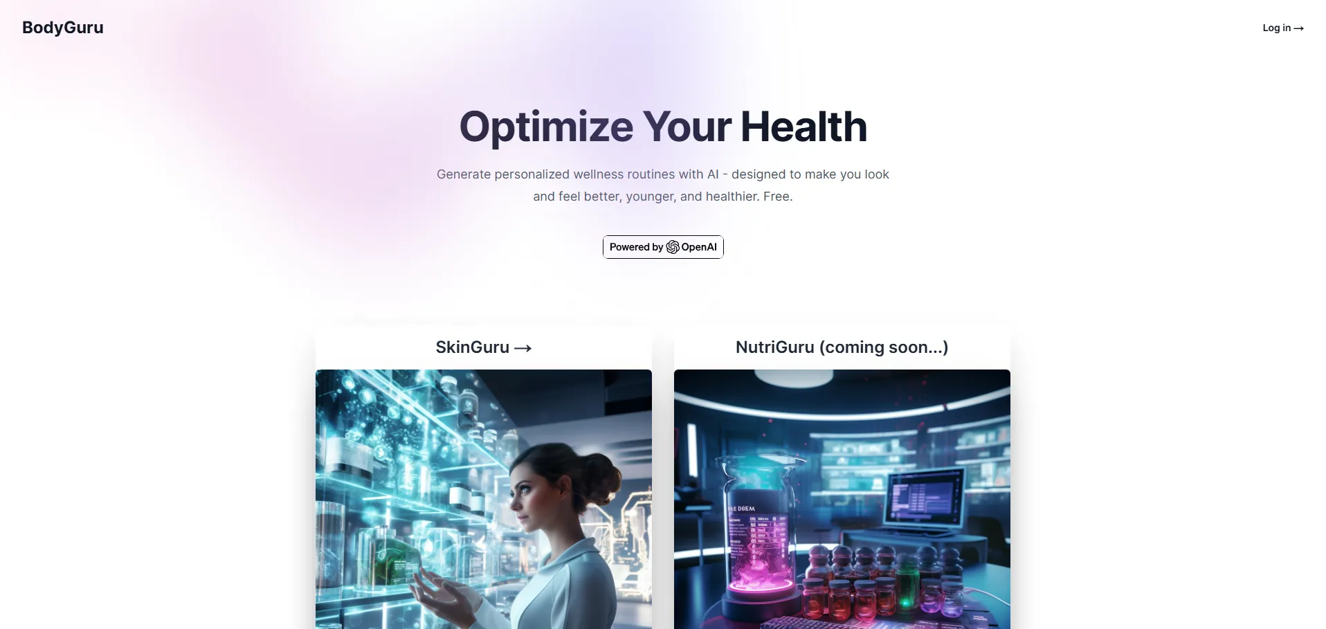 BodyGuru es una plataforma gratuita impulsada por inteligencia artificial que crea rutinas de bienestar y recomendaciones de salud totalmente personalizadas. Diseñada para ayudarte a verte y sentirte más joven, saludable y lleno de energía, BodyGuru combina análisis de datos, seguimiento continuo y consejos adaptados a tu estilo de vida para optimizar tu salud física y mental sin necesidad de un entrenador profesional.
