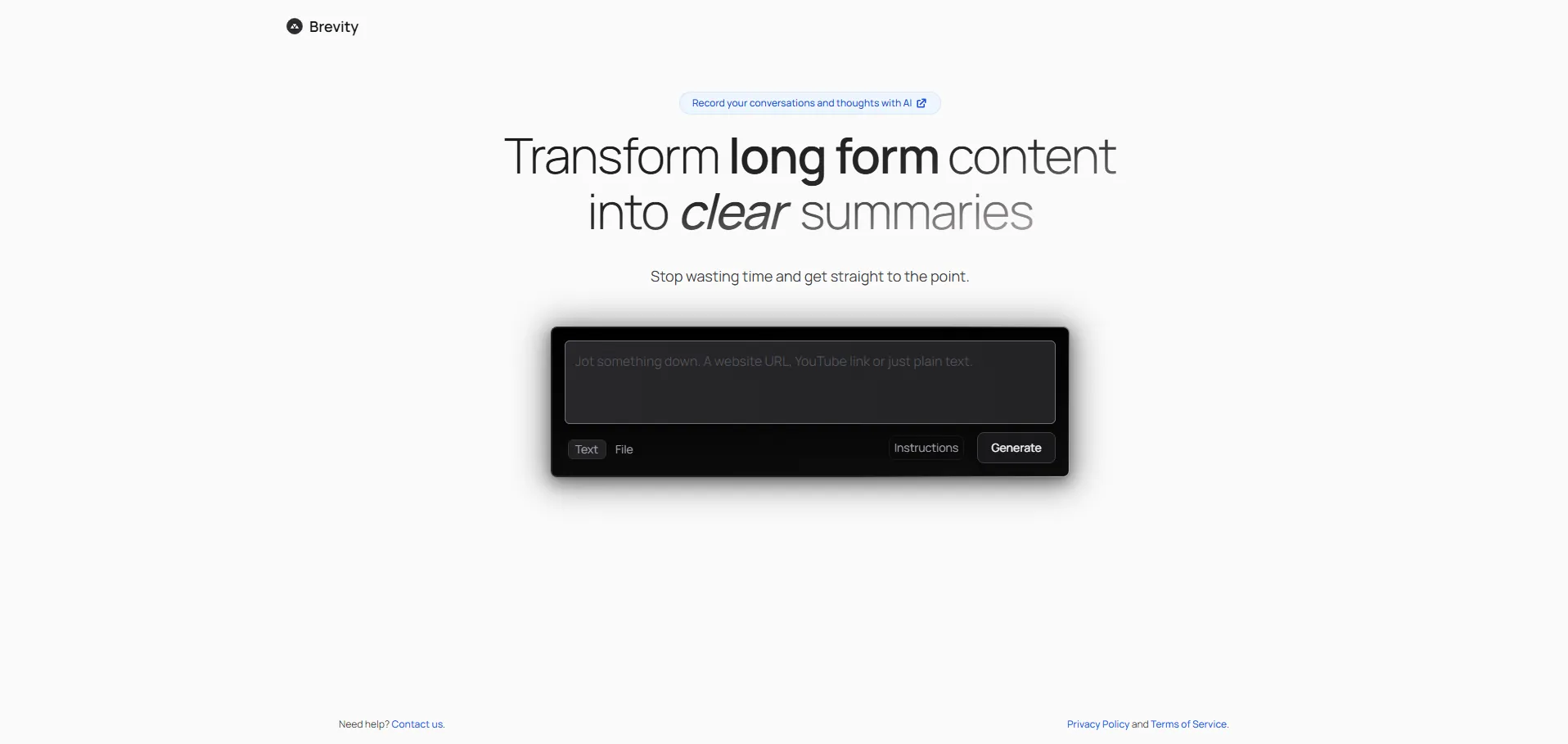 Brevity es una plataforma de inteligencia artificial que transforma textos extensos en resúmenes claros y precisos. Su tecnología avanzada automatiza el análisis de contenido, identificando las ideas clave y eliminando redundancias para ofrecer condensados de alta calidad. Con Brevity Pro, los usuarios acceden a funciones avanzadas para personalizar el nivel de detalle y el formato de los resúmenes.