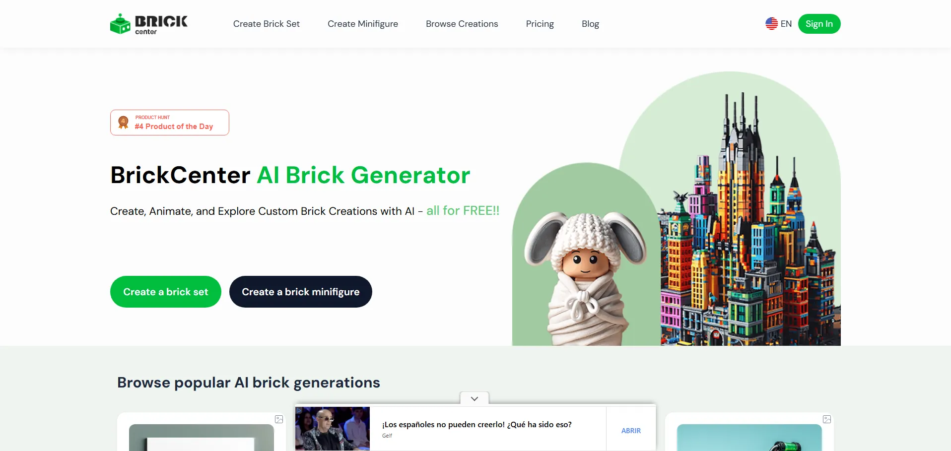 Brickcenter es una innovadora plataforma de diseño de ladrillos impulsada por inteligencia artificial, que facilita la generación de sets de ladrillos y minifiguras personalizados en 3D. Con una interfaz intuitiva y una biblioteca de bloques y colores siempre actualizada, permite a usuarios de todos los niveles dar vida a proyectos únicos: desde maquetas de vehículos y estructuras temáticas hasta criaturas míticas y obras de arte en ladrillo. Gracias a su generador de sets de ladrillos IA, Brickcenter optimiza el proceso creativo, convirtiéndose en la herramienta perfecta para aficionados, coleccionistas y educadores.
