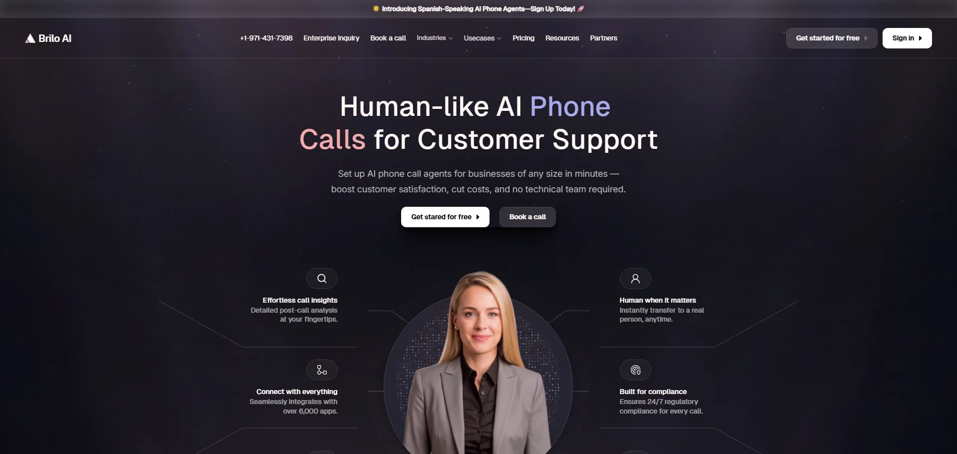 Brilo AI es una solución de agentes telefónicos conversacionales impulsada por inteligencia artificial, diseñada para optimizar la atención al cliente y potenciar las ventas en startups y grandes empresas. Permite desplegar bots de voz en minutos, automatizando llamadas en sectores como salud, inmobiliario, logística y servicios financieros. Ofrece llamadas paralelas, transferencia en vivo y gestión de interrupciones, junto con transcripción en tiempo real y buzón de voz inteligente. Gracias a su integración con más de 6000 herramientas vía Zapier y webhooks, se adapta a flujos de trabajo existentes manteniendo disponibilidad 24/7, control de velocidad de voz y monitorización de calidad en cada interacción.