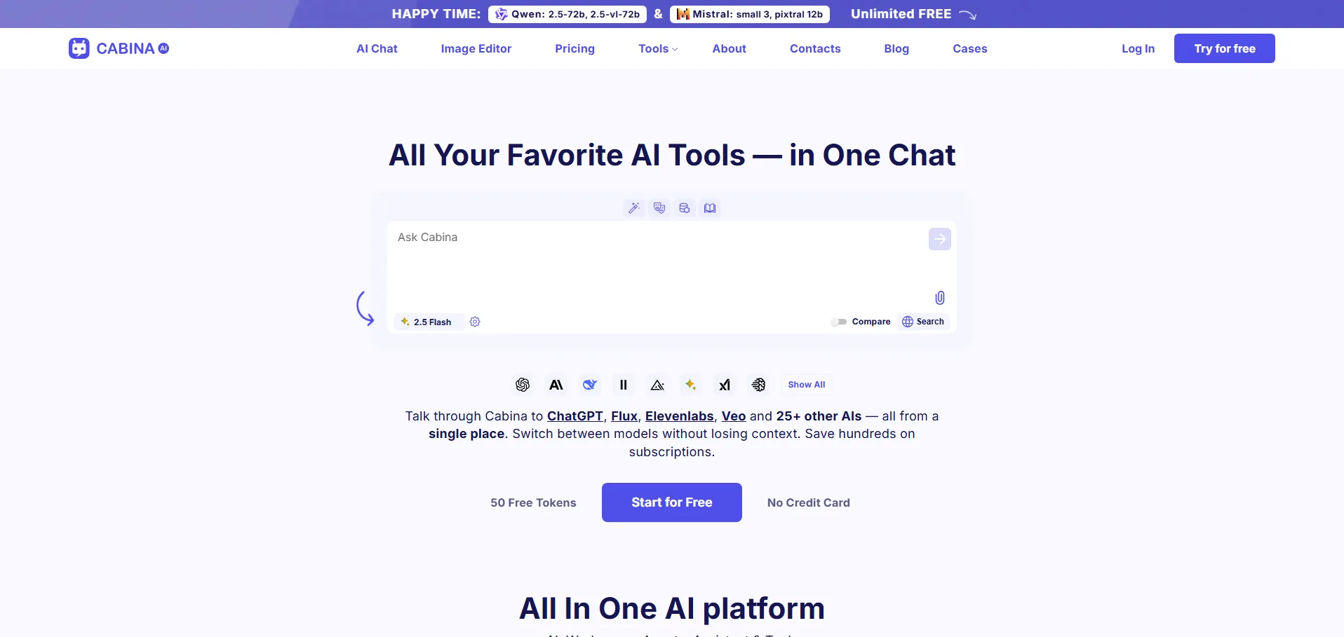Cabina AI es un espacio de trabajo de chat con inteligencia artificial todo en uno que centraliza tus chatbots favoritos en una única plataforma. Permite alternar entre modelos de IA sin perder el contexto, comparar respuestas y optimizar la productividad. Con una interfaz intuitiva, facilita la toma de decisiones y ofrece herramientas avanzadas como roles de agente personalizables, comandos predefinidos y soporte para documentos y multimedia.