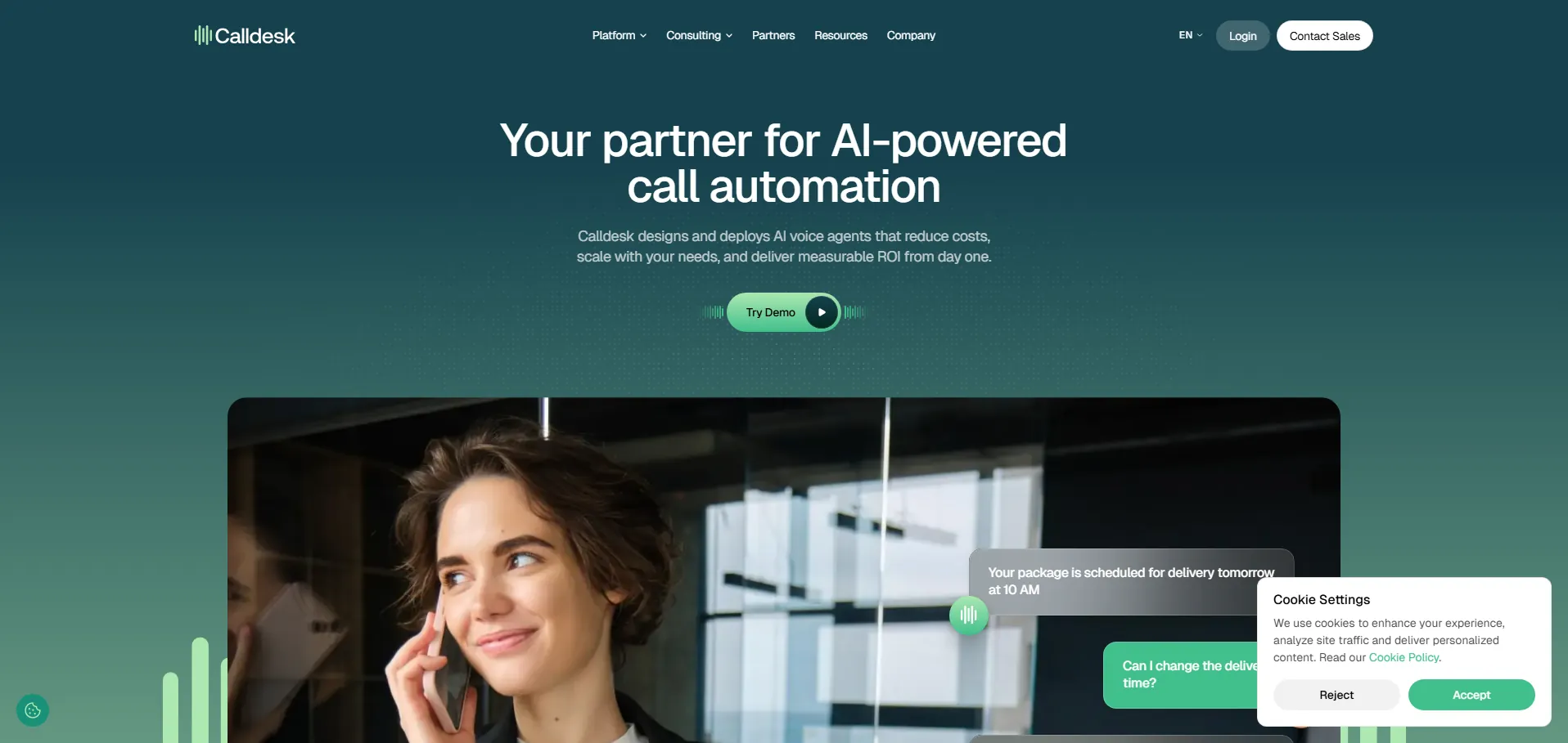 CallDesk es una plataforma de agentes de voz con inteligencia artificial diseñada para optimizar la atención al cliente mediante la automatización de llamadas rutinarias y sistemas de soporte inteligentes. Permite implementar agentes de IA personalizados capaces de gestionar consultas frecuentes sin intervención humana, incrementando las tasas de autoservicio hasta en un 80 % y reduciendo los tiempos promedio de gestión en un 40 %. Con seguridad de nivel empresarial y herramientas de recopilación de feedback, CallDesk ayuda a minimizar costos operativos y a ofrecer una experiencia de cliente fluida y eficiente.