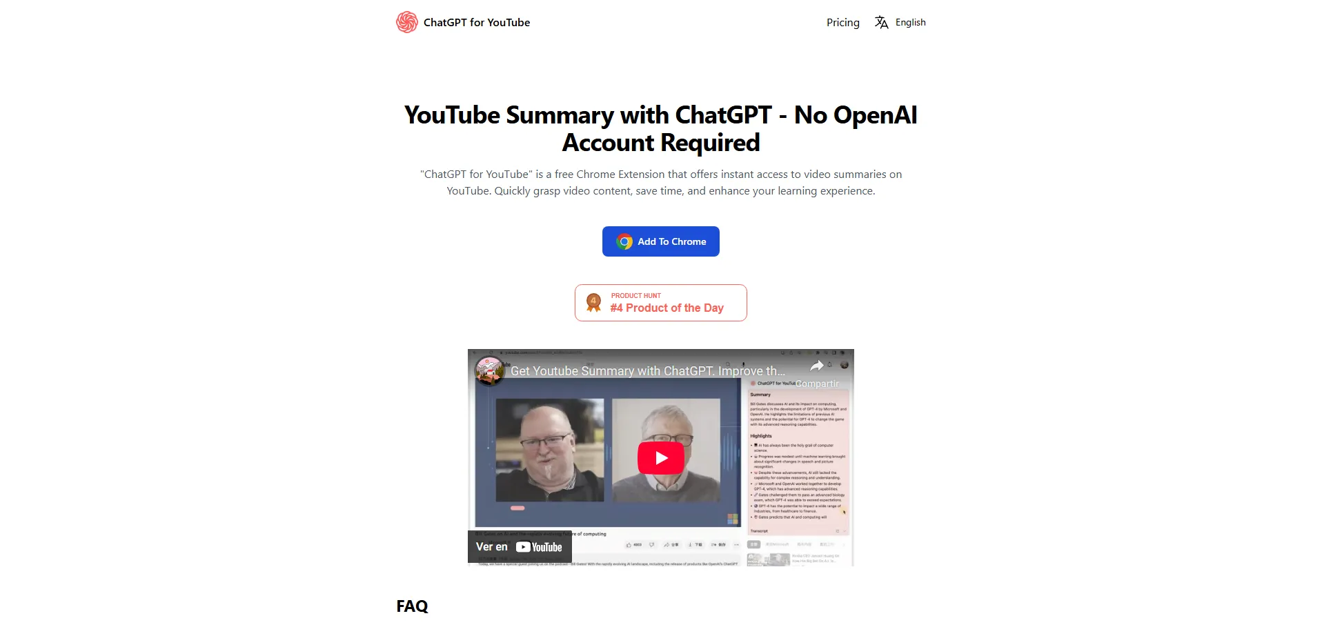 ChatGPT para YouTube es una extensión gratuita de Chrome impulsada por inteligencia artificial que permite resumir y extraer los puntos clave de cualquier video de YouTube en segundos. Con esta herramienta, los usuarios optimizan su tiempo de aprendizaje y obtienen una visión clara del contenido sin ver el video completo. No requiere cuenta de ChatGPT ni registro en OpenAI. Para consultas, contacta con [email protected]