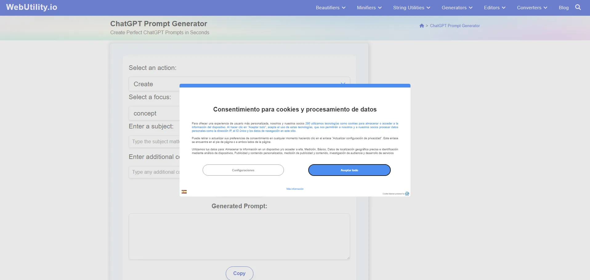 El Generador de Mensajes de ChatGPT es una herramienta avanzada que permite crear prompts optimizados para interactuar con el modelo de lenguaje ChatGPT. Mediante campos que definen el rol, la tarea y el formato deseados, la herramienta genera mensajes claros y efectivos para iniciar conversaciones, formular preguntas o proporcionar instrucciones detalladas. Su uso facilita obtener respuestas más precisas y coherentes del modelo, agilizando la comunicación con la IA.