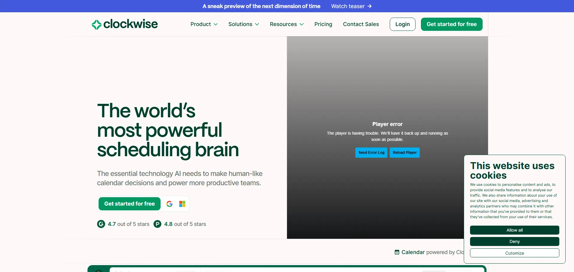 Clockwise es un calendario inteligente de gestión del tiempo basado en inteligencia artificial que utiliza tecnología GPT para optimizar la programación de equipos y empresas. La plataforma automatiza la organización del calendario, ajustando dinámicamente los horarios de reuniones y reservando tiempos de concentración según las preferencias de cada usuario y del equipo.