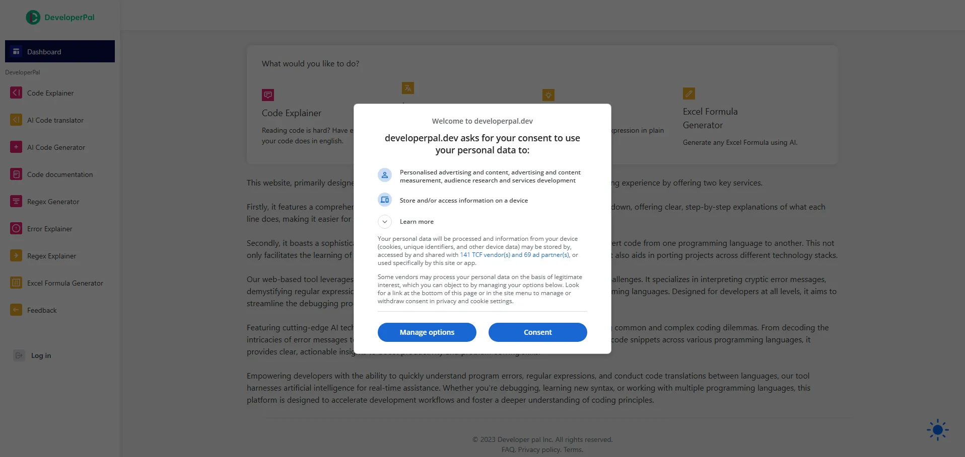 Code Explainer de DeveloperPal es una solución de inteligencia artificial diseñada para mejorar la comprensión y adaptación de código. La plataforma descompone fragmentos en explicaciones paso a paso, traduce automáticamente entre distintos lenguajes de programación, interpreta mensajes de error y desglosa expresiones regulares, proporcionando asistencia inmediata para optimizar el flujo de trabajo y acelerar el desarrollo.