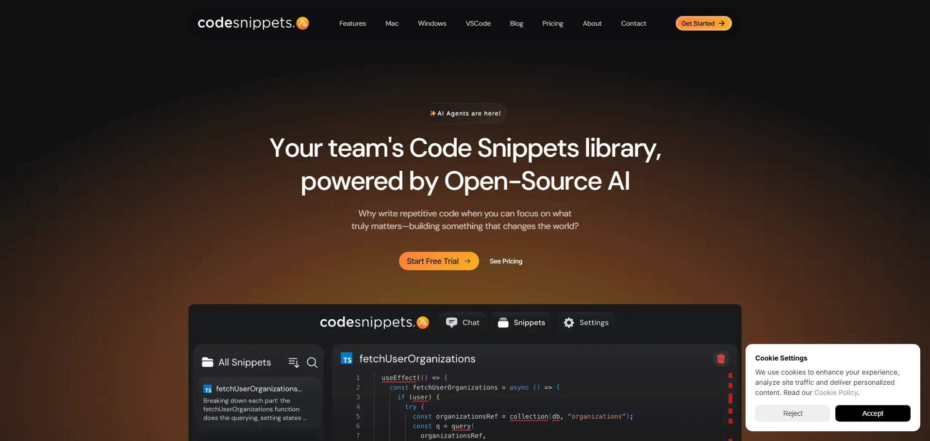 Code Snippets AI es una biblioteca segura de fragmentos de código impulsada por inteligencia artificial, diseñada para mejorar la productividad, la comunicación y la colaboración de equipos de desarrollo. Permite guardar, compartir y acceder a snippets en todo el flujo de trabajo y ofrece herramientas avanzadas para generar, refactorizar, depurar y documentar código automáticamente mediante IA.