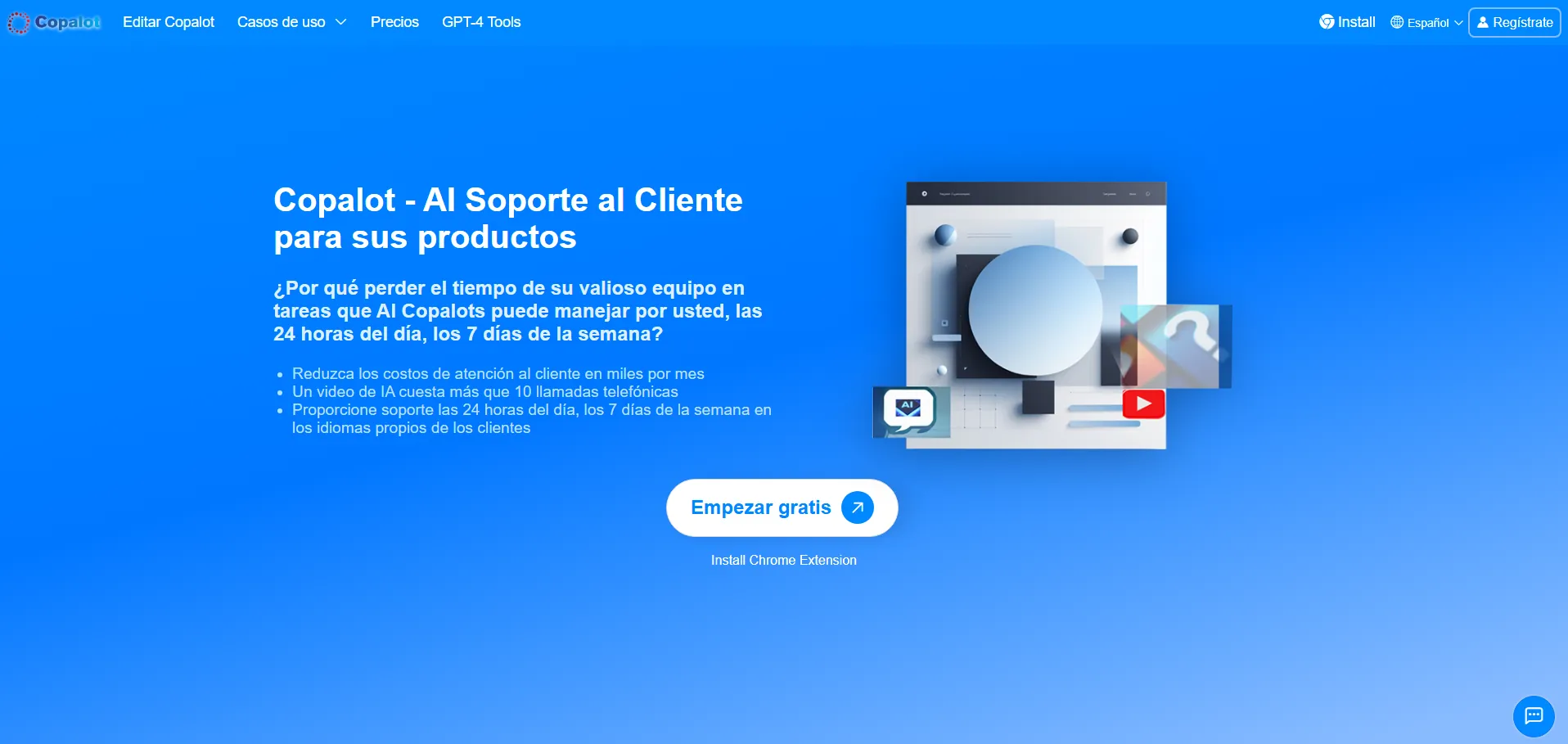 Copalot AI Support es una herramienta de soporte al usuario basada en inteligencia artificial, diseñada para pequeñas empresas. Ofrece soluciones personalizables de ChatGPT y preguntas frecuentes en video, disponibles 24/7 y en múltiples idiomas. Permite reducir costos de soporte al cliente brindando respuestas instantáneas a consultas comunes y liberando recursos del equipo. La configuración es sencilla: solo hay que subir manuales o URL para crear chatbots y videos de FAQ, e integrarlos en el sitio web existente sin complicaciones.