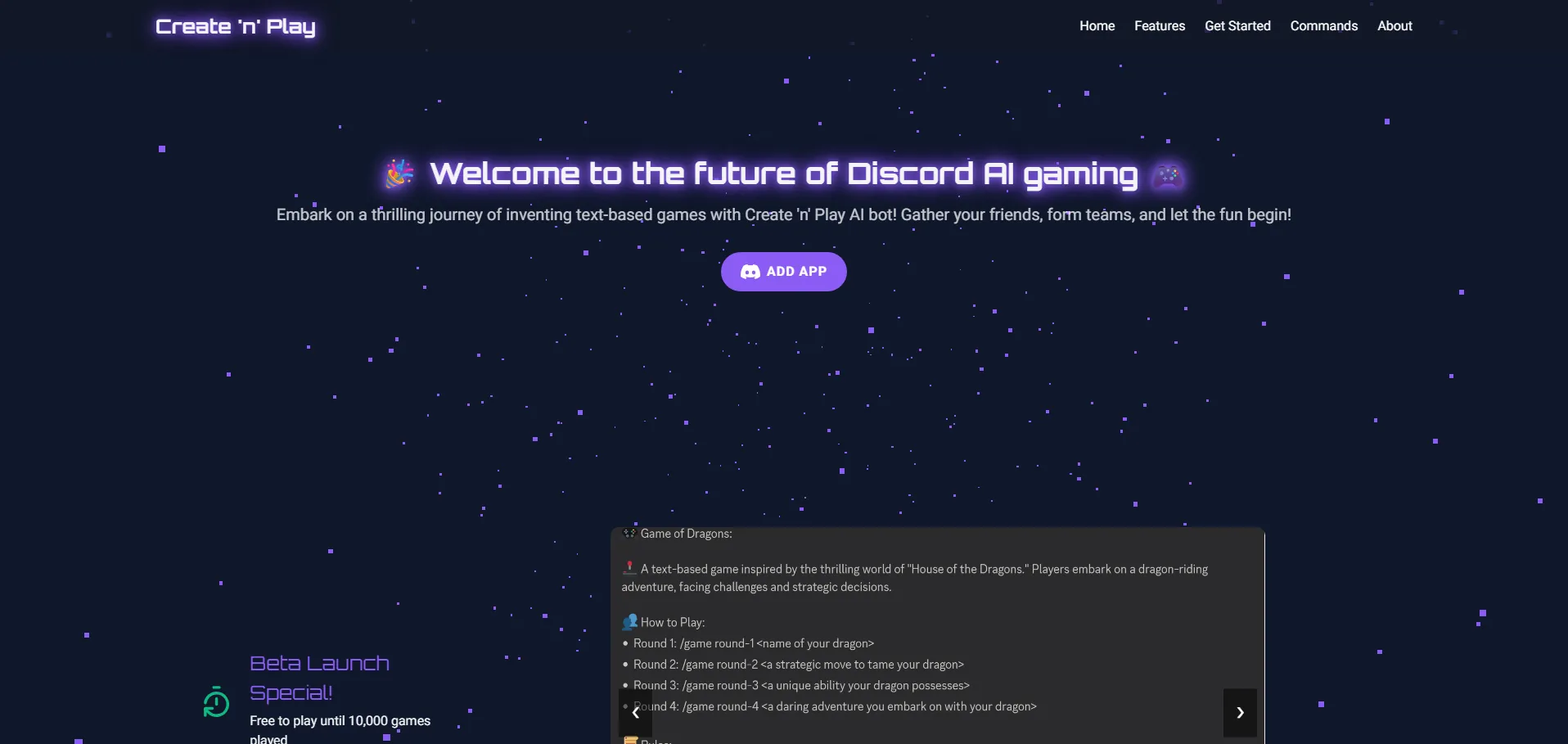 Create ’n’ Play es un bot de Discord impulsado por IA que permite crear y jugar partidas multijugador personalizadas en texto. Los usuarios invitan al bot a su servidor, utilizan comandos sencillos para diseñar escenarios únicos e interactúan con amigos en sesiones colaborativas. La inteligencia artificial adapta la narrativa a las sugerencias de los jugadores, ofreciendo una experiencia diferente en cada partida. Con su biblioteca de juegos tradicionales, opciones de personalización y capacidad de formar equipos, Create ’n’ Play enriquece la creatividad y la interacción social en Discord.