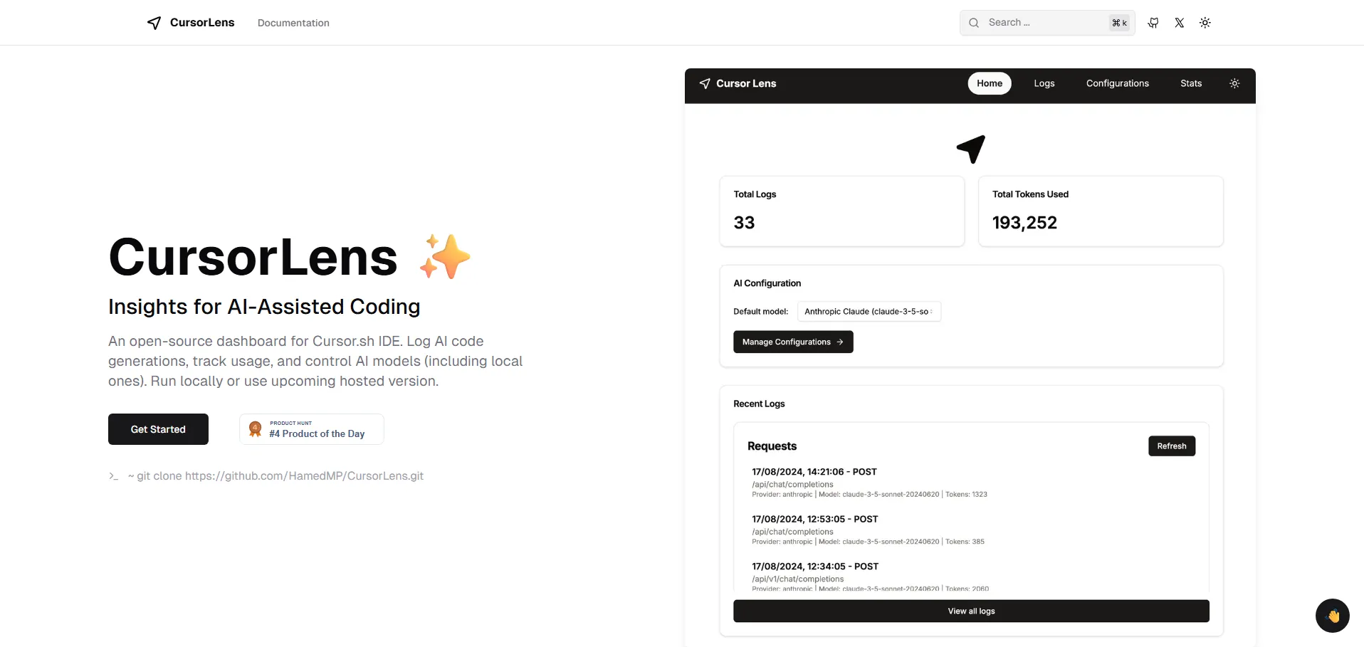 CursorLens es una herramienta de código abierto diseñada para ayudar a los desarrolladores a gestionar la generación y el uso de código de IA. Cuenta con un panel intuitivo para realizar un seguimiento de las interacciones con la IA y registrar la actividad de forma eficiente. Gracias a la compatibilidad con el almacenamiento en caché, mejora el rendimiento y reduce los tiempos de respuesta. Puede ejecutarse localmente o mediante una próxima versión alojada, ofreciendo flexibilidad en la implementación. Su integración con diversos modelos de IA permite experiencias de programación personalizables y optimizadas, ideal para desarrolladores individuales y equipos.