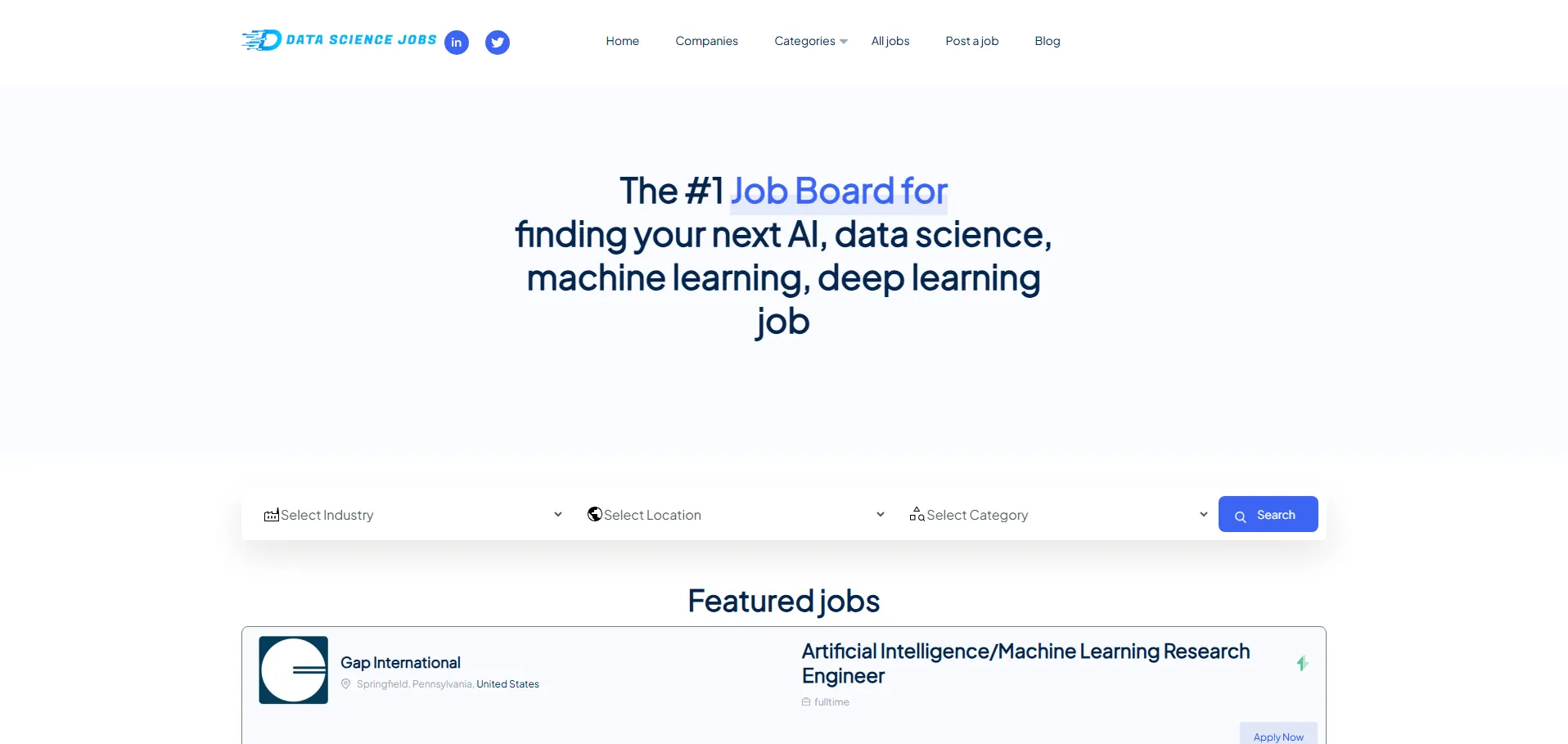 Datasciencejobs.com es un portal de empleo especializado en IA, ciencia de datos, aprendizaje automático, aprendizaje profundo, ingeniería de datos y visión artificial. Con actualizaciones diarias, conecta a candidatos con vacantes de empresas líderes a nivel mundial y ofrece filtros avanzados para que encuentres oportunidades adaptadas a tu perfil en cuestión de segundos.