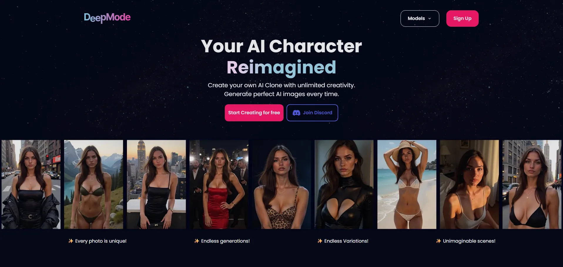 {DeepMode} es una plataforma de IA generativa que revoluciona la creación de modelos clonados de inteligencia artificial para la generación de imágenes de alta calidad sin restricciones. Su entorno en la nube permite entrenar clones personalizados a partir de etiquetas y fotos propias, garantizando privacidad y confidencialidad. Con DeepMode, los creadores disfrutan de una experiencia intuitiva y libre de censura para material visual único.