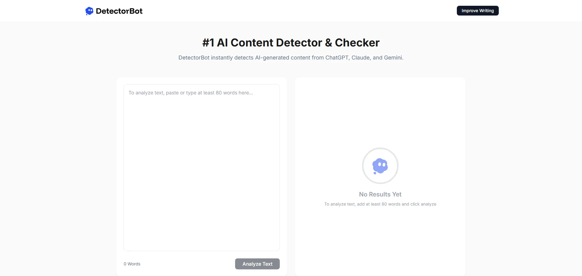 DetectorBot es una plataforma de detección de contenido generado por inteligencia artificial, compatible con modelos como ChatGPT, GPT-4, Claude y Gemini. Emplea algoritmos propios y un amplio corpus multilingüe para analizar textos de más de 80 palabras, ofreciendo informes detallados con puntuaciones de confianza sobre fragmentos potencialmente creados por IA. Esta herramienta gratuita permite a docentes, estudiantes e investigadores asegurar la autenticidad de sus documentos y mantener la integridad académica.