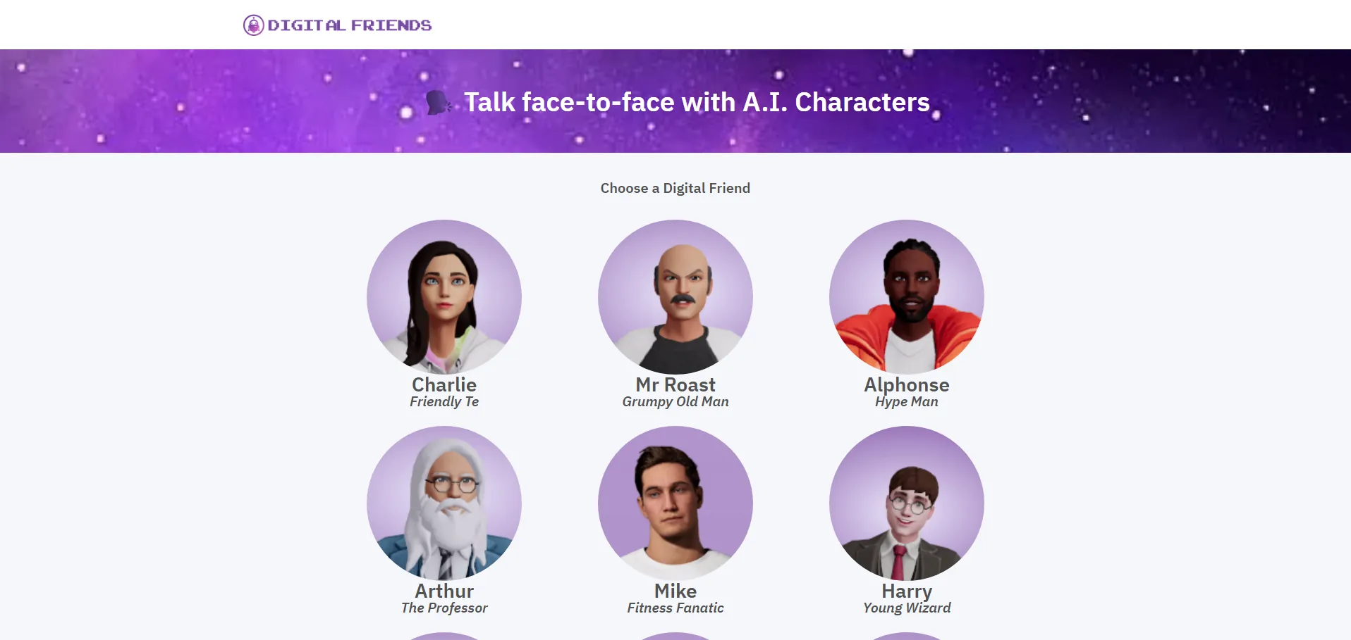 Digital Friends AI es una plataforma de avatares conversacionales impulsados por inteligencia artificial que permite entablar interacciones inmersivas y personalizadas. Los usuarios pueden chatear cara a cara con personajes como Charlie, el adolescente amigable; Elon, el emprendedor visionario; y Ananda, el guía espiritual. Gracias a su tecnología multimodal, ofrece comunicación por texto, audio, video, realidad aumentada (RA), realidad virtual (VR) y realidad mixta (MR), fomentando vínculos duraderos con cada amigo digital.