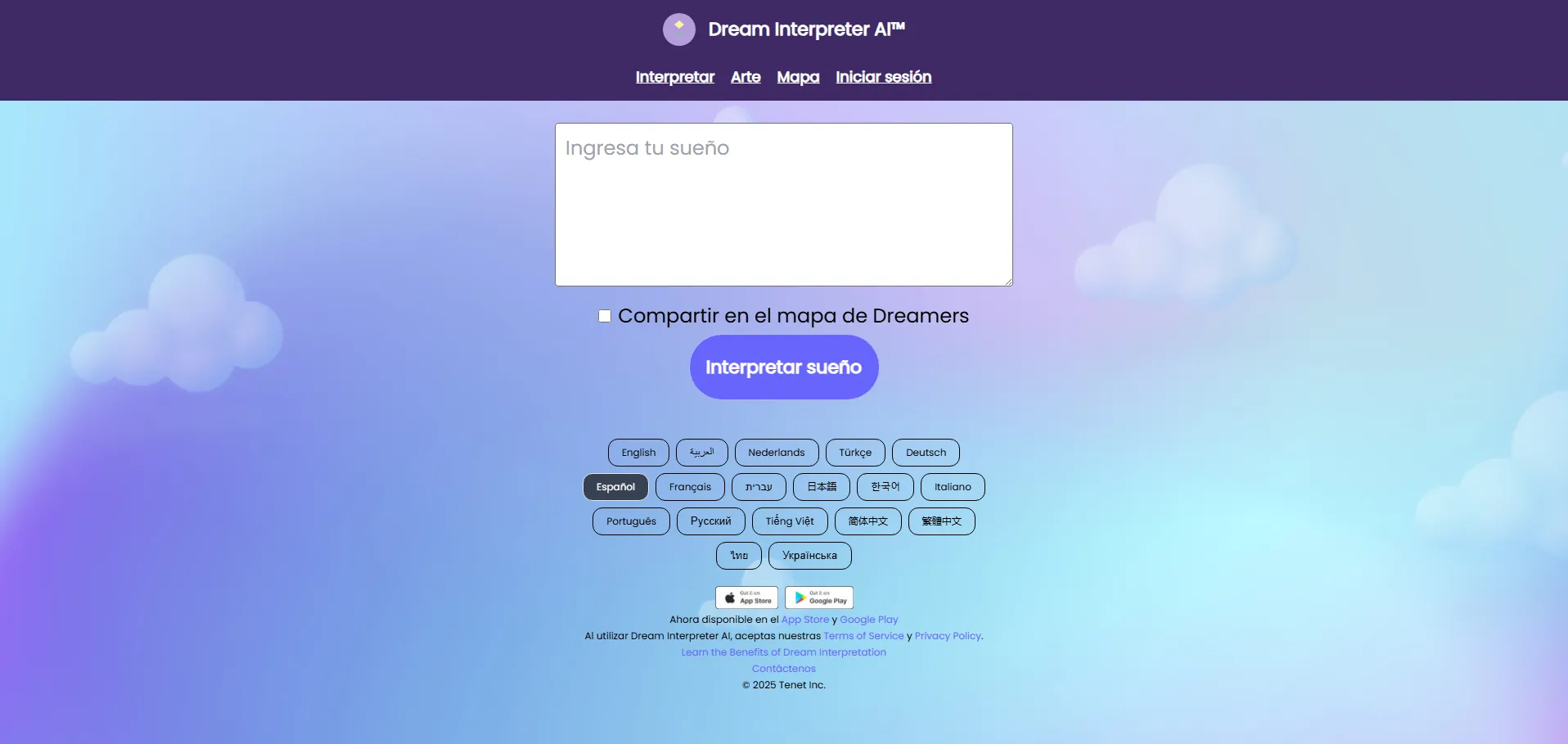 Dream Interpreter AI está accesible desde cualquier navegador en dispositivos móviles y de escritorio. No requiere instalación y ofrece actualizaciones periódicas con nuevas funciones, artículos especializados y recursos educativos sobre interpretación onírica.