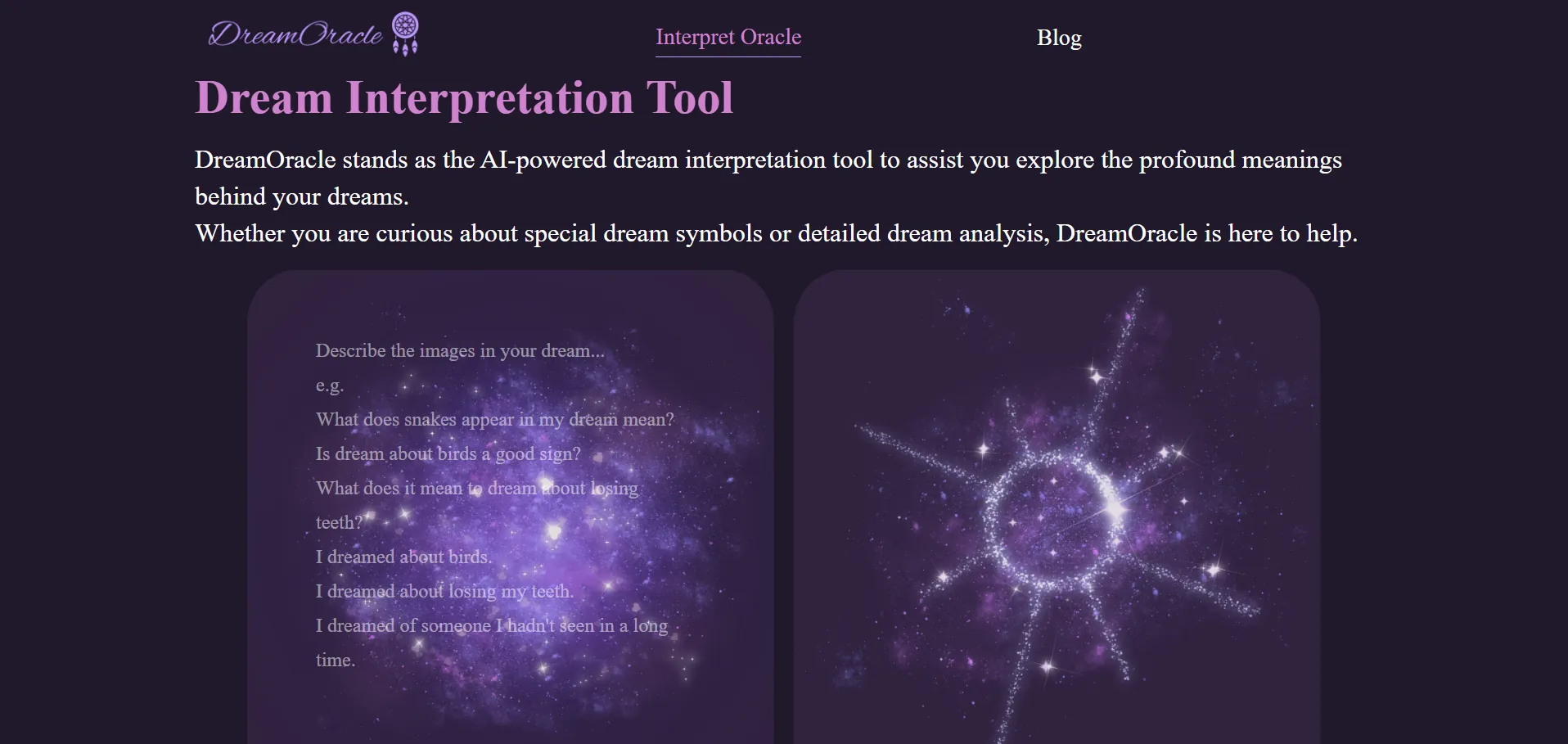 DreamOracle es una plataforma de interpretación de sueños potenciada por inteligencia artificial que te ayuda a descifrar el significado de tus experiencias oníricas. Mediante el análisis de símbolos—animales, acciones y emociones—y un diccionario onírico completo, DreamOracle ofrece hallazgos personalizados que conectan tus sueños con tu contexto psicológico, elevando la autoconciencia y desbloqueando los mensajes de tu subconsciente.