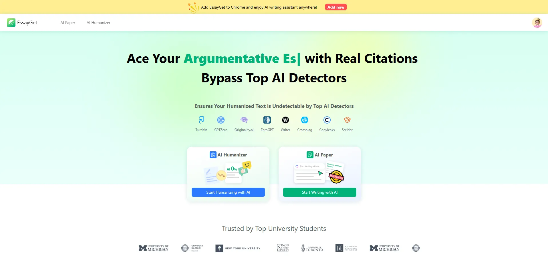 EssayGet es una herramienta de inteligencia artificial diseñada para transformar y humanizar textos generados por IA, logrando que parezcan escritos por personas. Gracias a sus algoritmos avanzados de refinamiento y reformulación, elimina cualquier rastro de automatización, garantizando autenticidad y coherencia. Además, supera los principales detectores de IA como Turnitin y GPTZero, y facilita la creación de esquemas completos y la aplicación precisa de estilos de citación académica (APA, MLA, Chicago), adaptándose a los requisitos de cada trabajo y manteniendo la integridad académica.