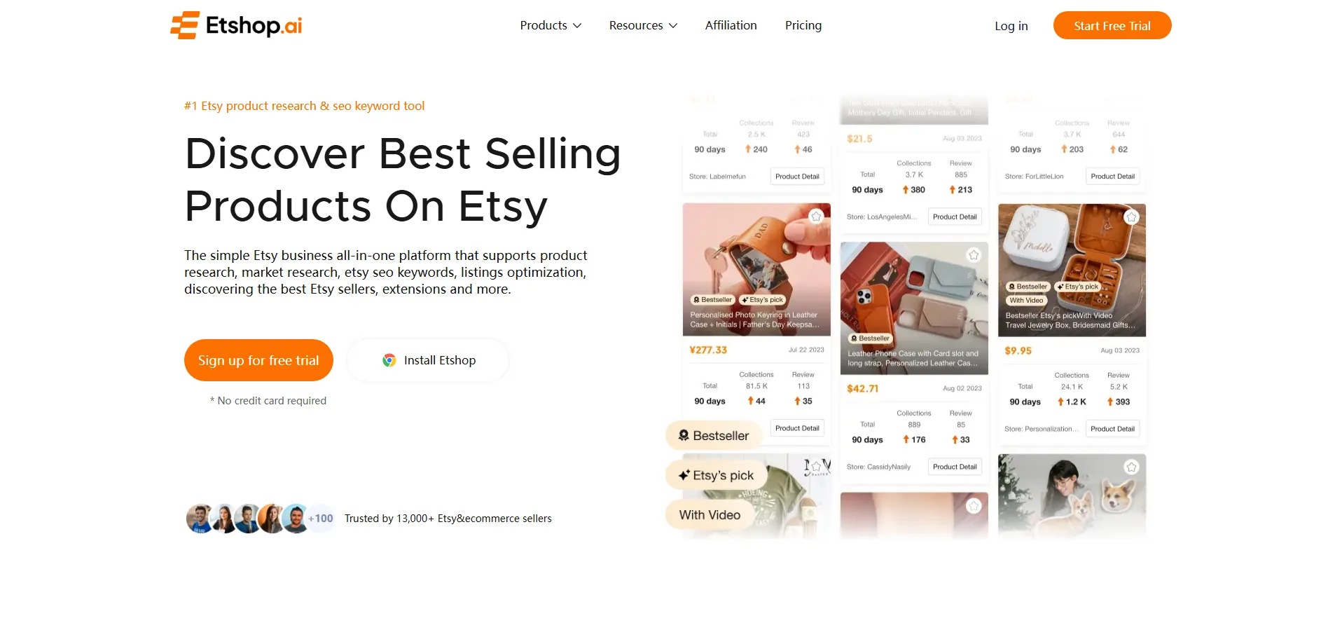 Etshop es una herramienta de investigación de productos y palabras clave SEO diseñada para vendedores de Etsy. Permite identificar artículos en tendencia y los más vendidos, encontrar palabras clave de baja competencia para mejorar el posicionamiento y acceder a datos de las tiendas con mayor rendimiento. Además, ofrece análisis comparativos de tiendas en Shopify y Amazon, ayudando a descubrir oportunidades de crecimiento basadas en datos reales de ventas.
